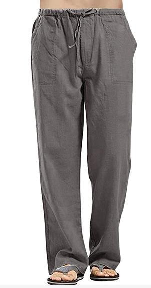 2020亚马逊独立站wish男士亚麻大尺码10色口袋长裤休闲居家裤子