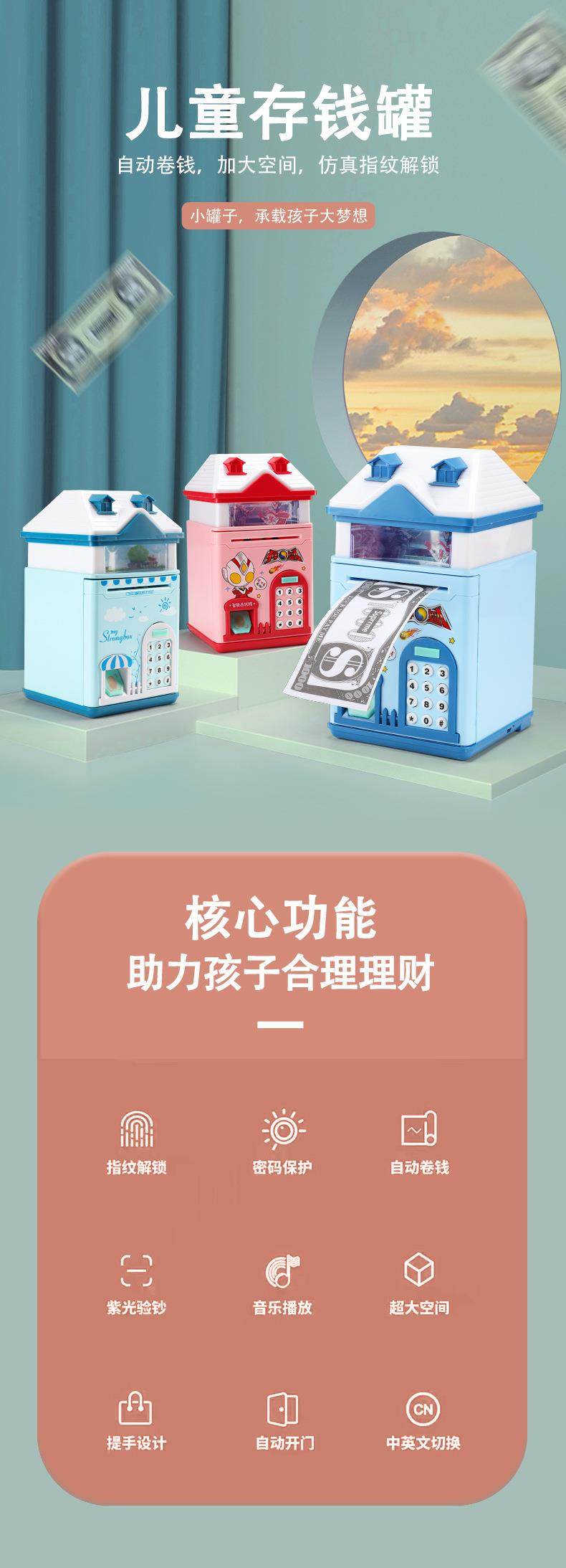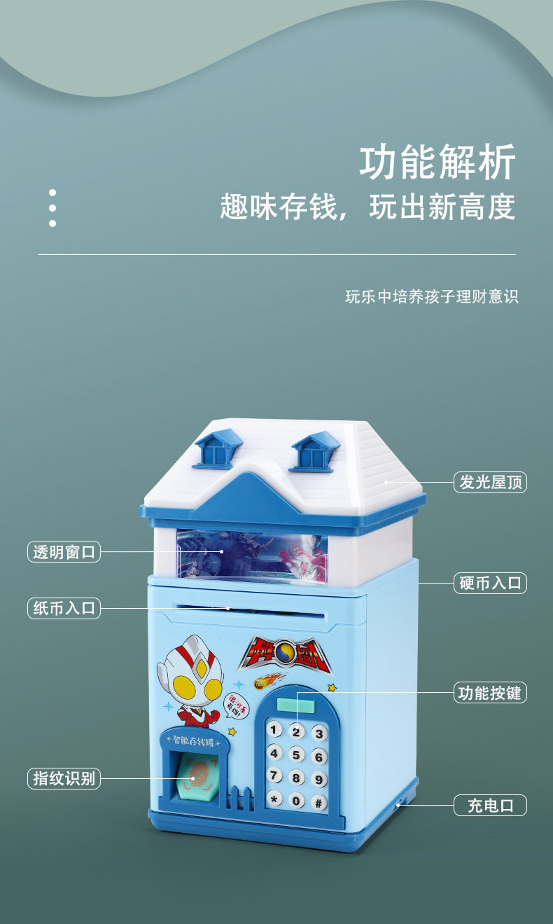 儿童储蓄存钱罐奥特曼密码可存可取只进不出男孩女网红2021年新款