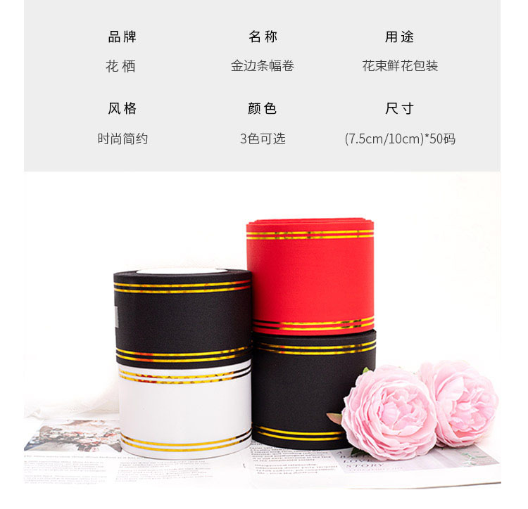 开业花篮金边条幅大号丝带花束材料红色拉带飘带花艺花店用品