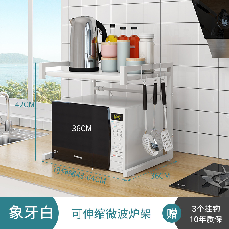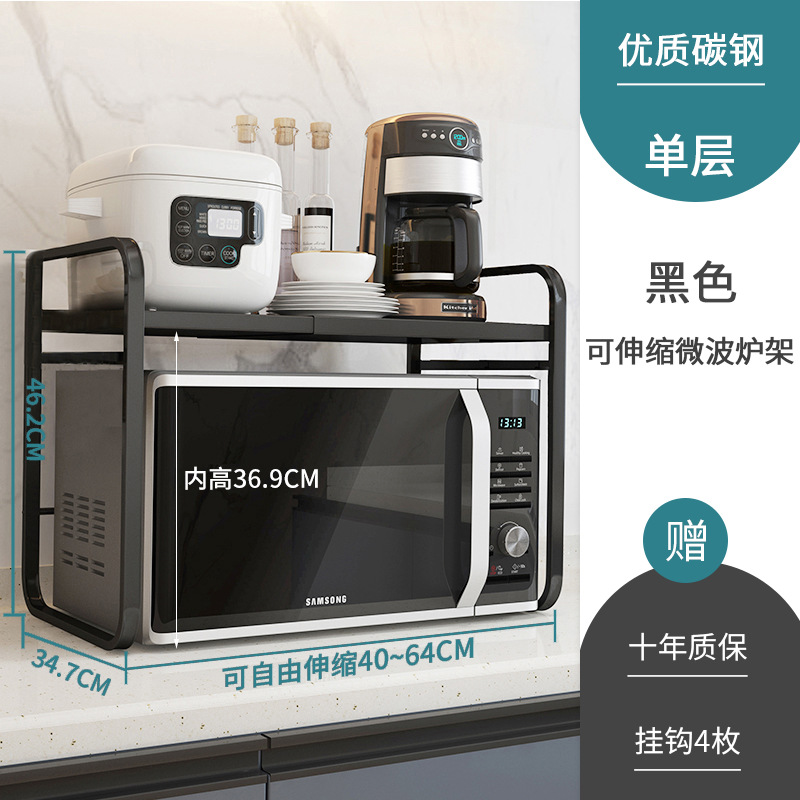 厨房微波炉置物架多功能不锈钢可伸缩调节微波炉架烤箱收纳架