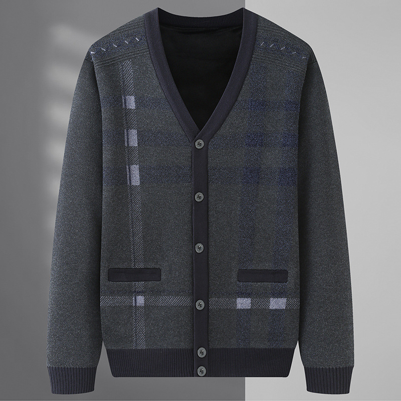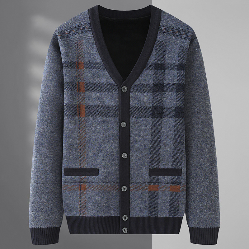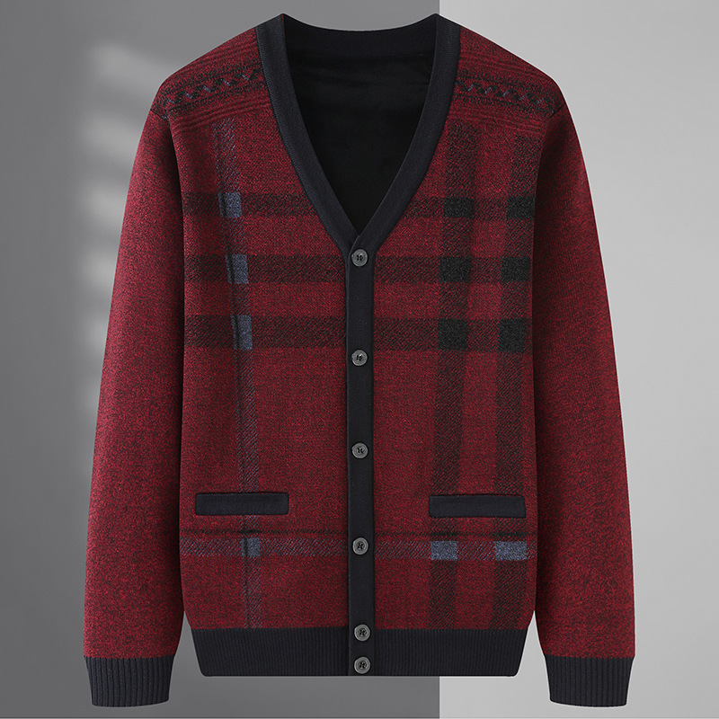 秋冬男式加绒加厚羊毛衫针织开衫中老年爸爸装外套长袖保暖衣开衫