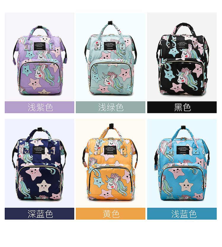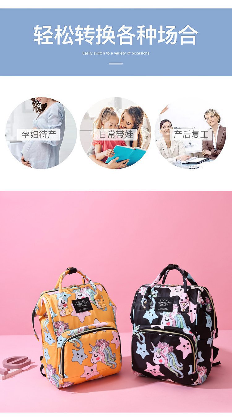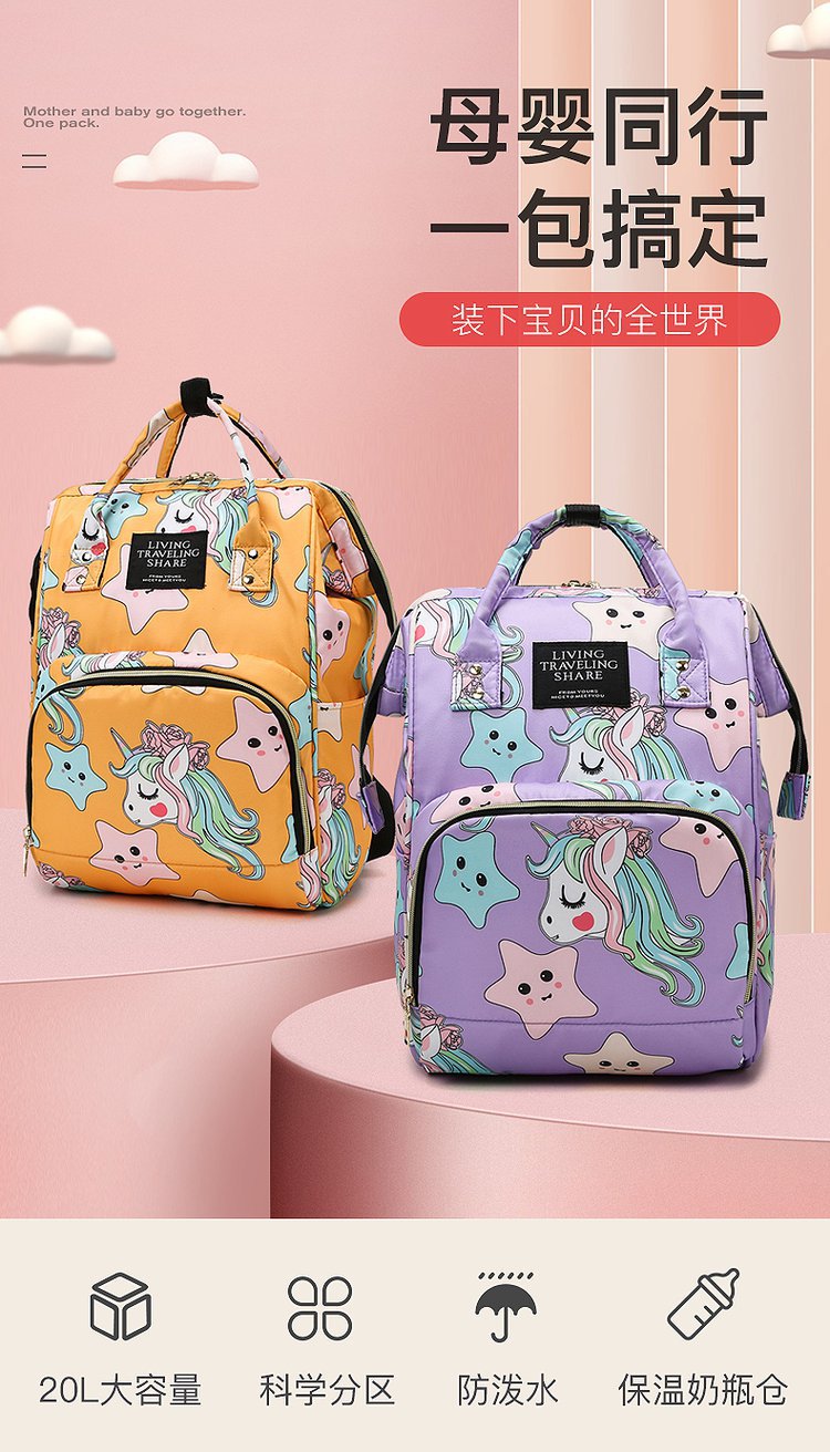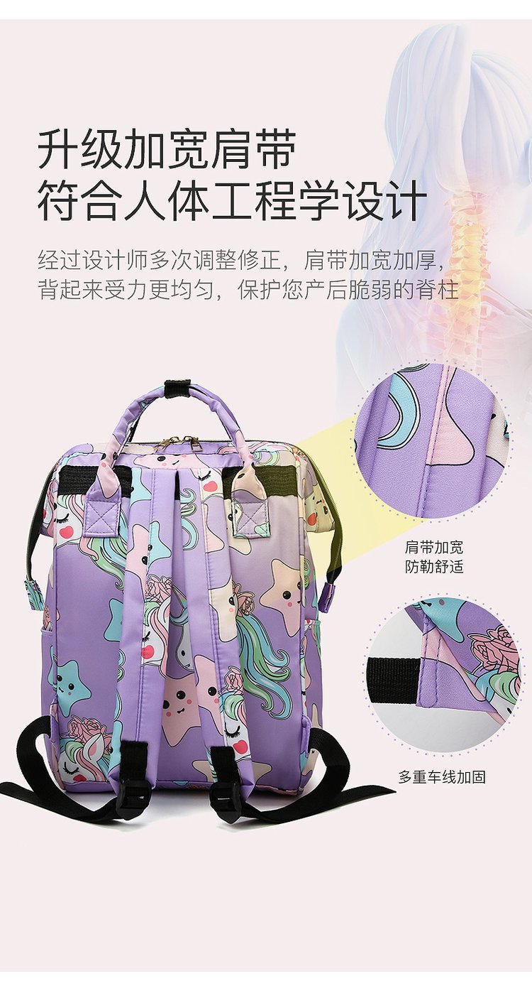 外贸批发妈咪包奶瓶背包妈妈双肩待产包独角兽卡通母婴包