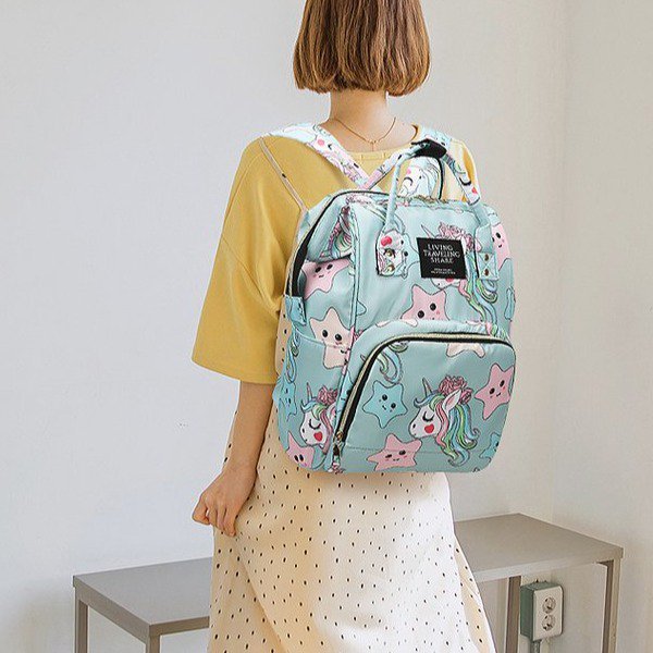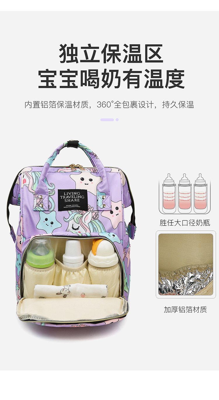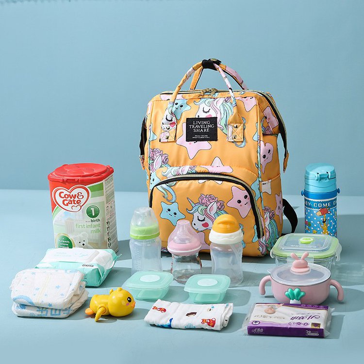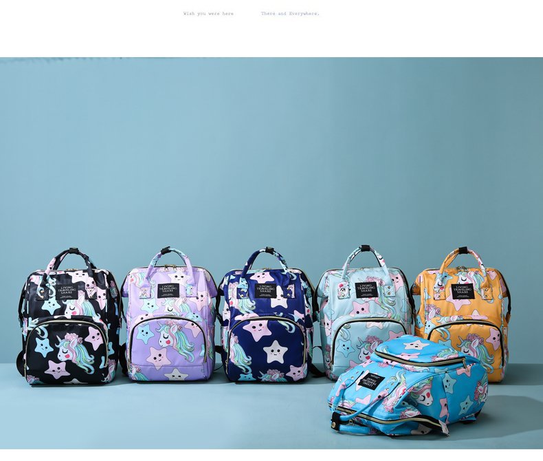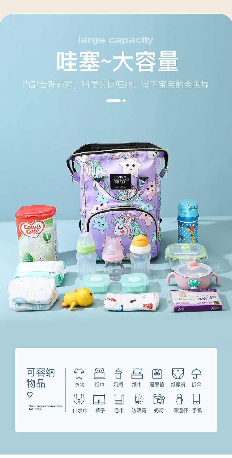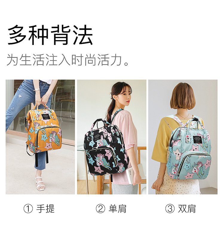 外贸批发妈咪包奶瓶背包妈妈双肩待产包独角兽卡通母婴包