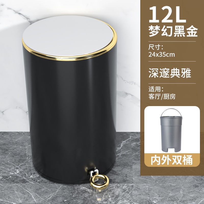 包邮轻奢垃圾桶不锈钢脚踩客厅欧式带盖家用卧室拉脚踏式新款床边