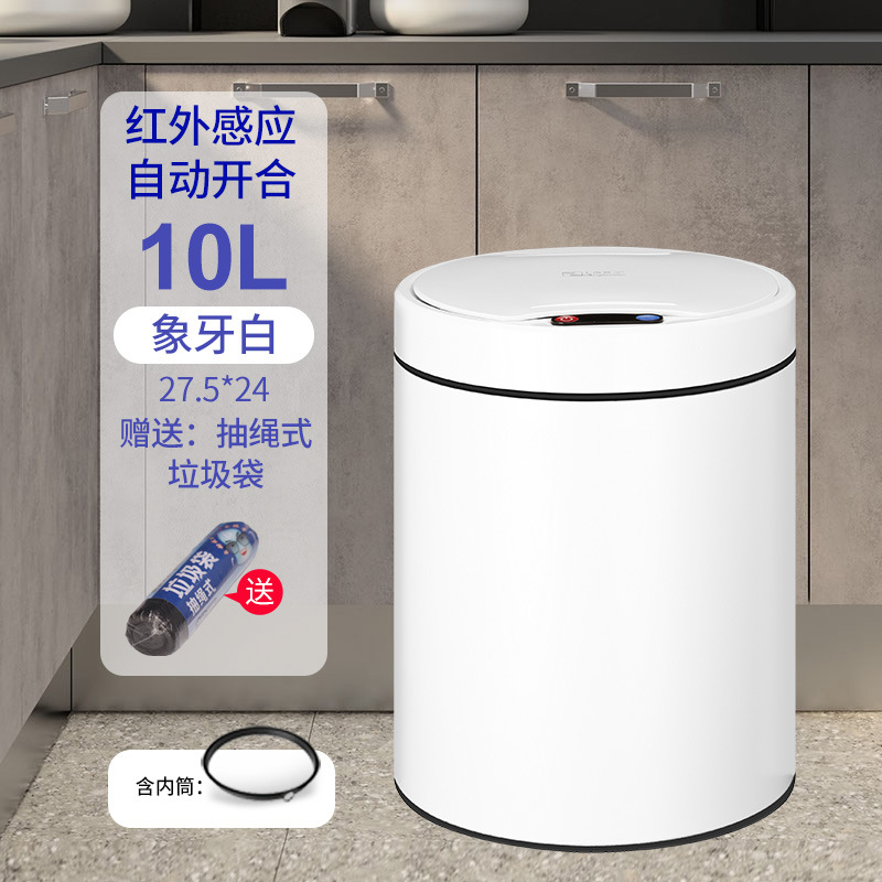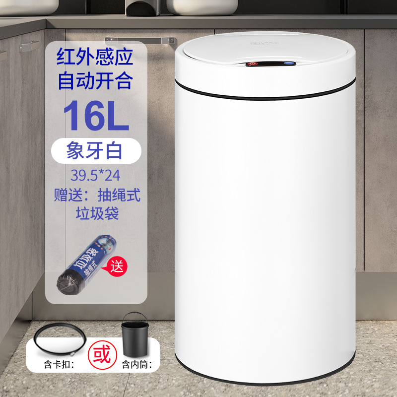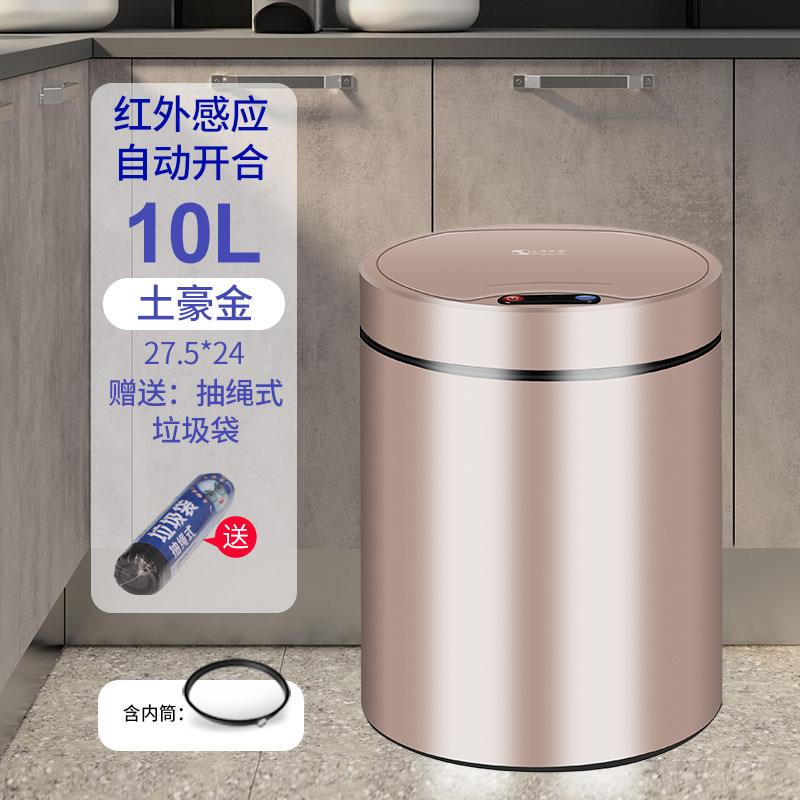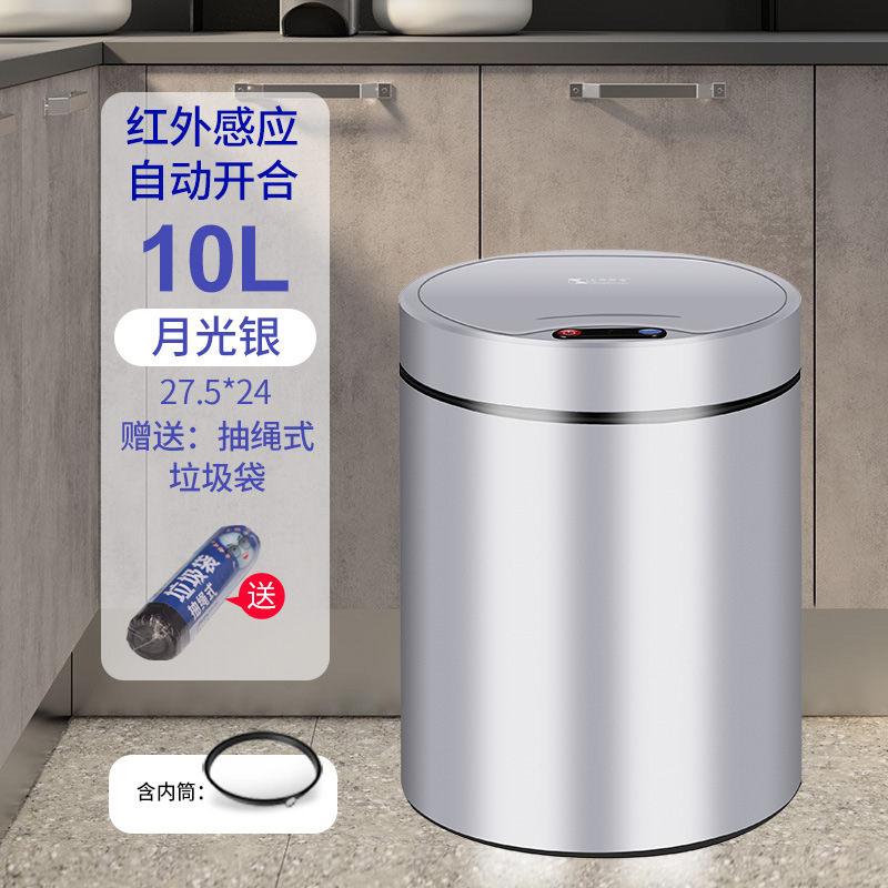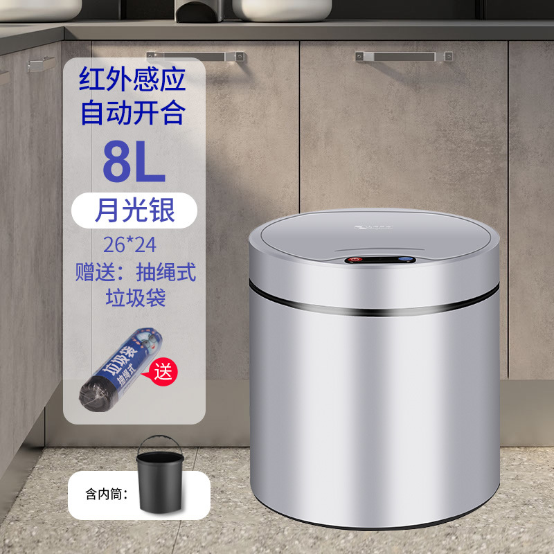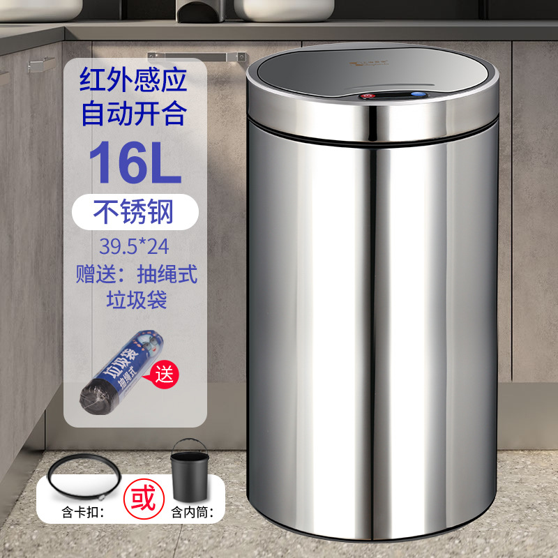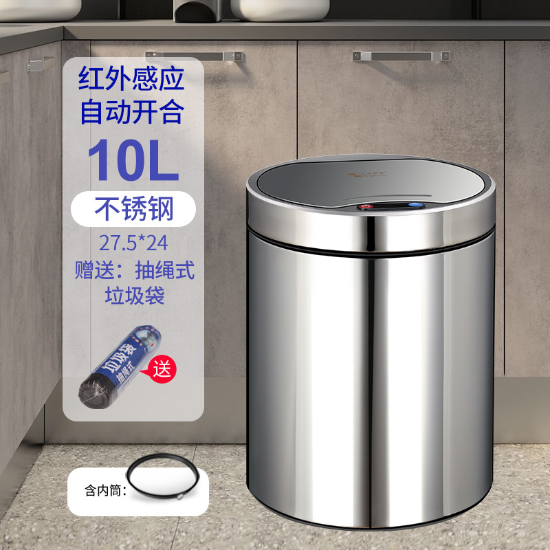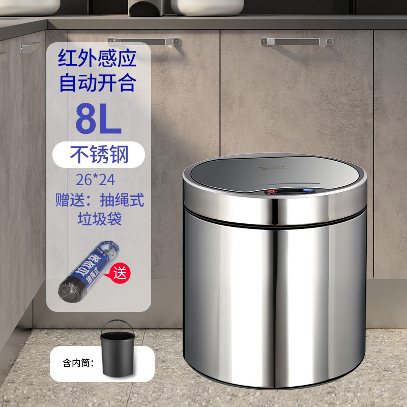 不锈钢全自动感应大容量垃圾桶圆形带盖家用厕所厨房客厅开盖..