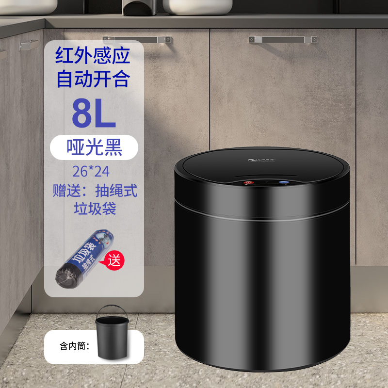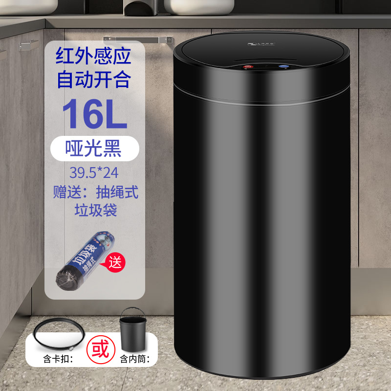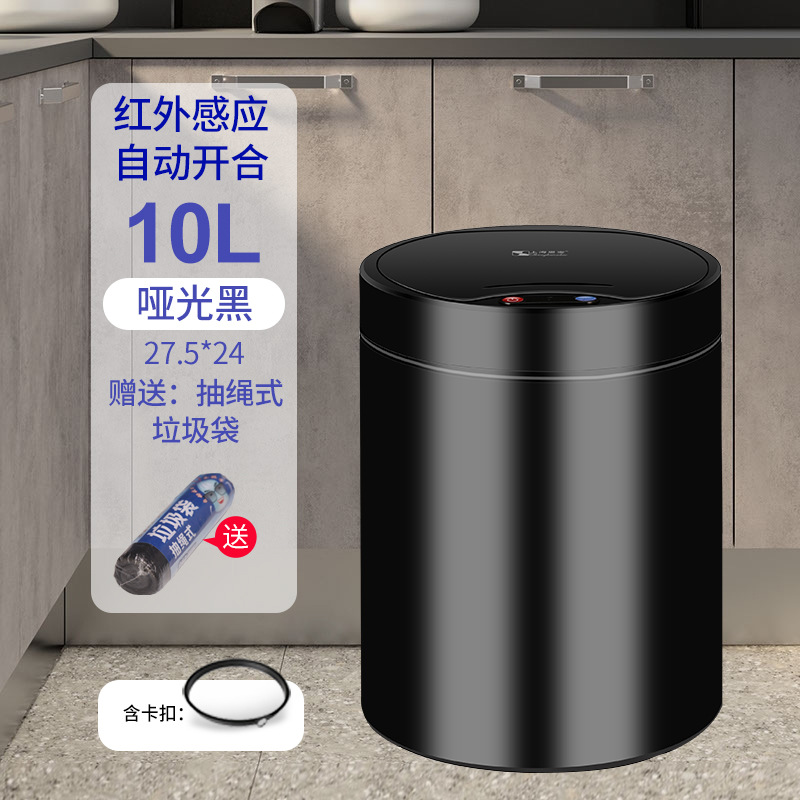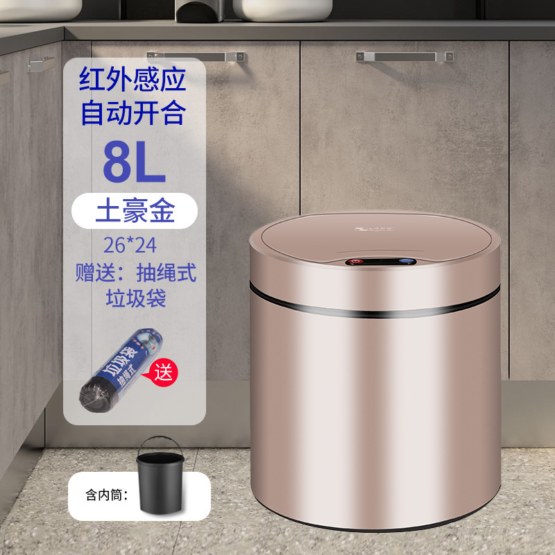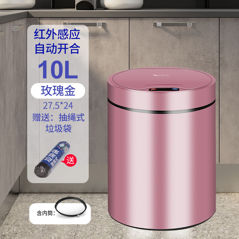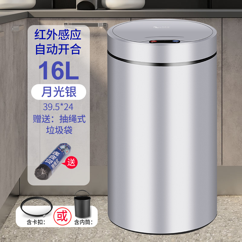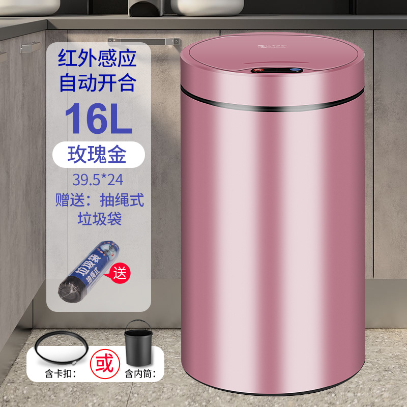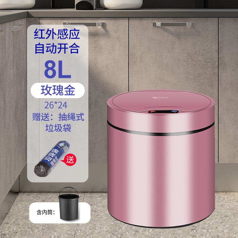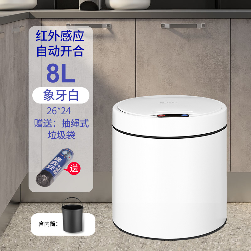 不锈钢全自动感应大容量垃圾桶圆形带盖家用厕所厨房客厅开盖..