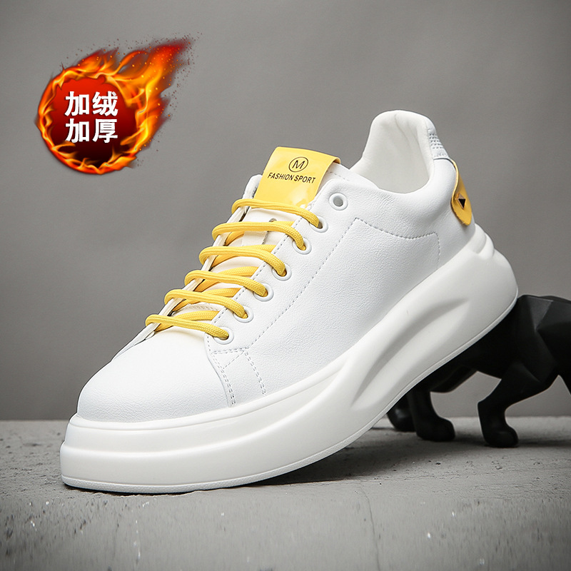 2024年加绒小白鞋潮流休闲鞋子厚底时尚炫彩潮牌男士板鞋温州
