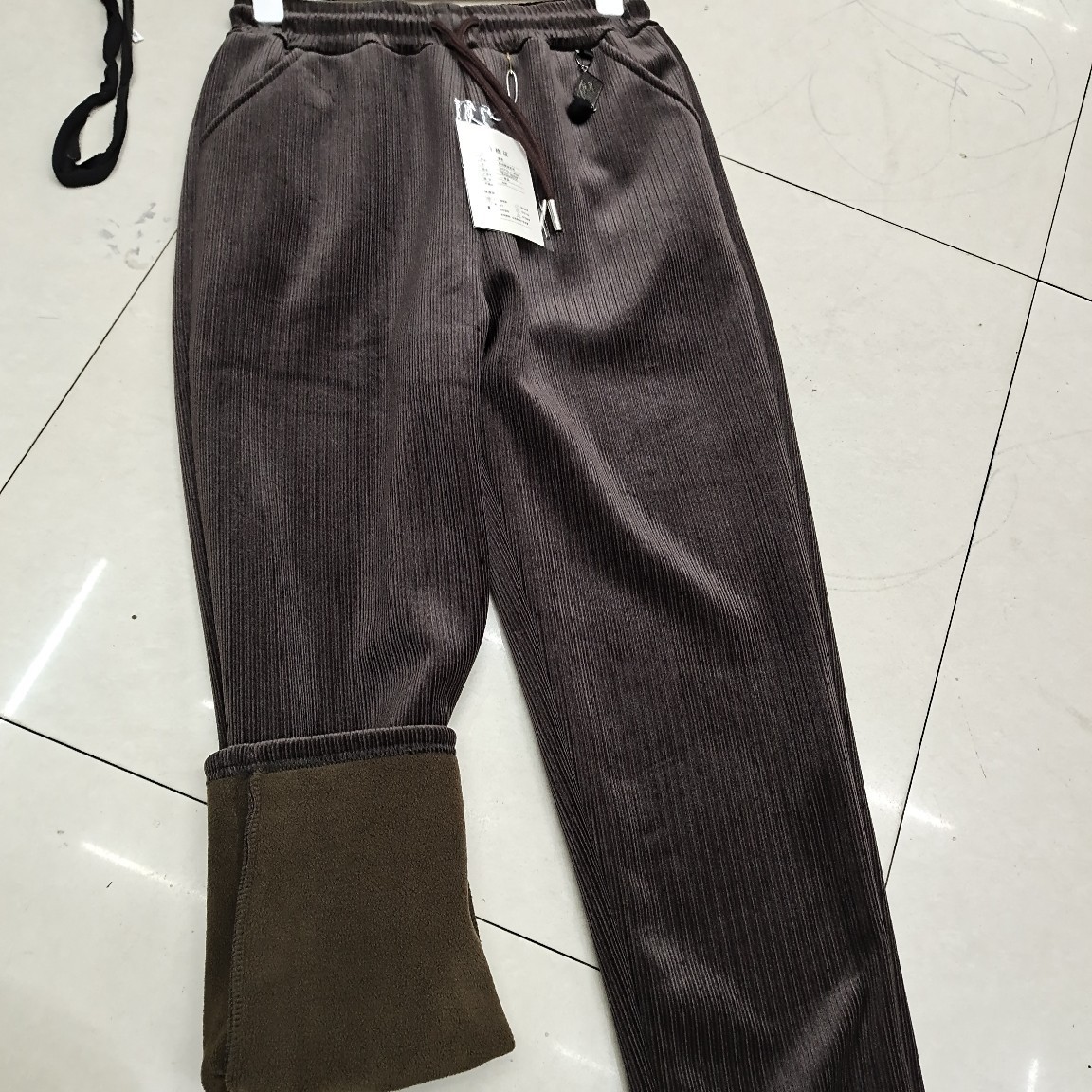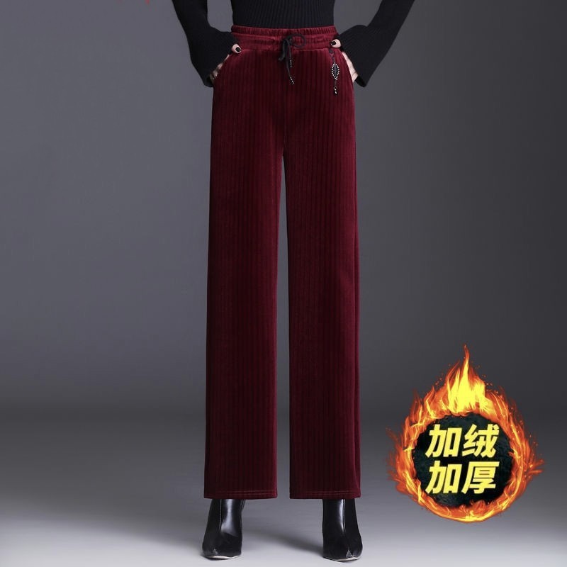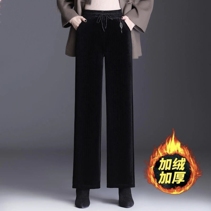 冬季加绒加厚灯芯绒阔腿裤女高腰条绒裤子女裤春秋款休闲直筒长裤