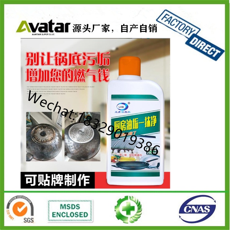 本厂专业生产各种厨房油垢一抹净,本厂具有丰富的经验定制客人指定LOGO, 可根据客人要求定制。我们的专业你们的放心,欢迎来电咨询.由于产品的特殊性,网站上的价格仅供参考,具体销售价格请联系我们的客服,感谢您的厚爱与支持!