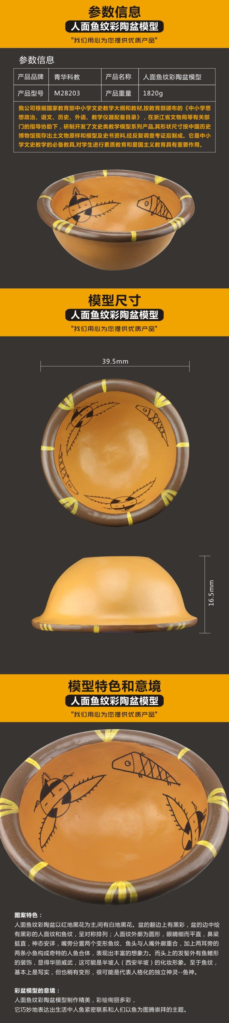 人面鱼纹彩陶盆教学模型,高精度复刻,教育优选!解决历史教学枯燥痛点,直观展示古代文化。