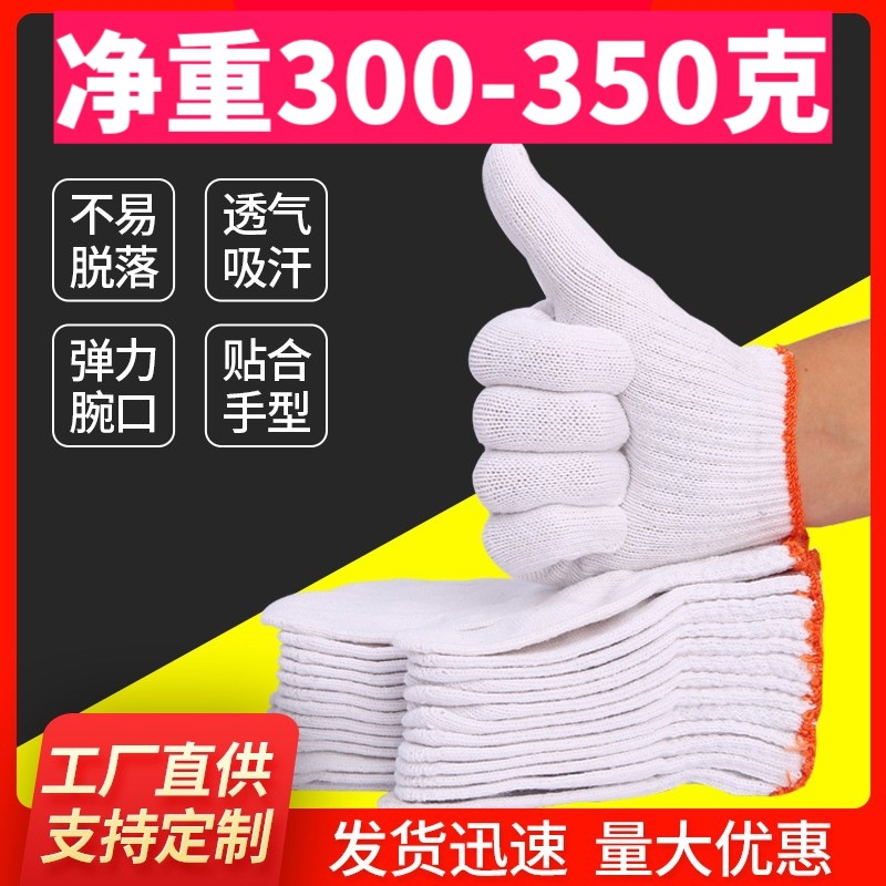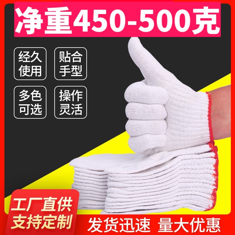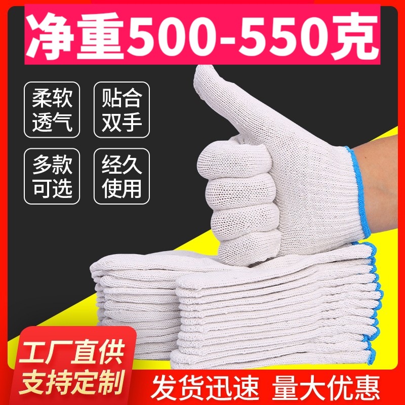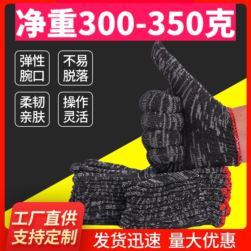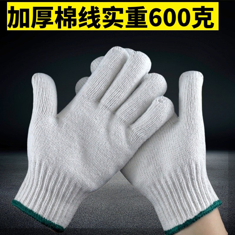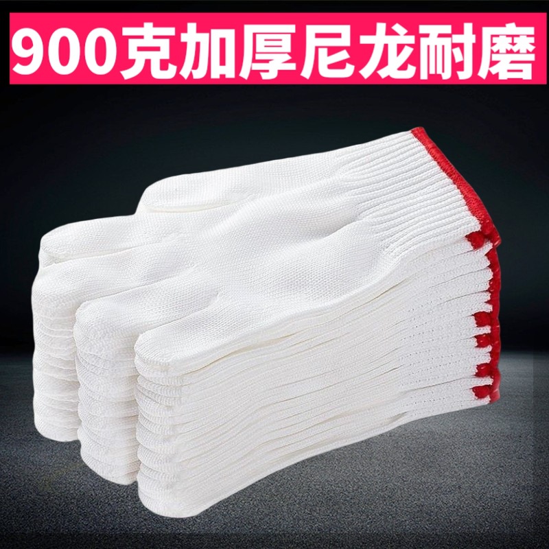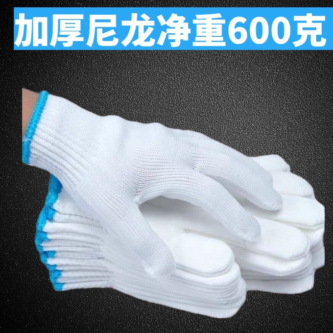 劳保手套黑加丝棉线手套工作加厚尼龙白色纱线手套劳动批发线手套