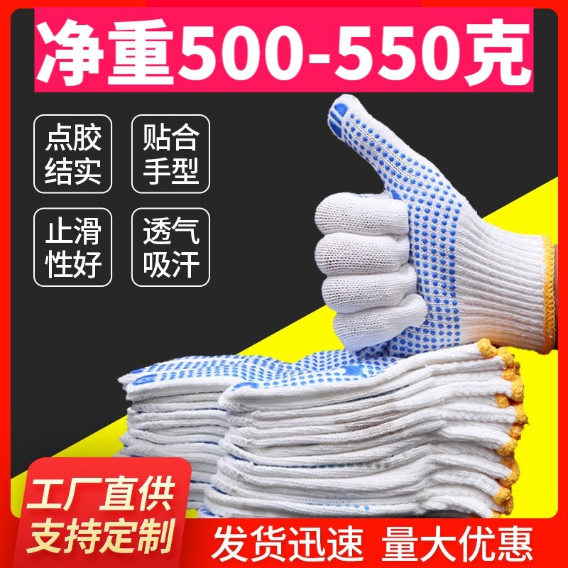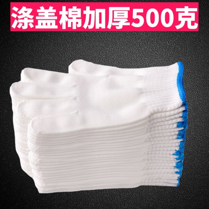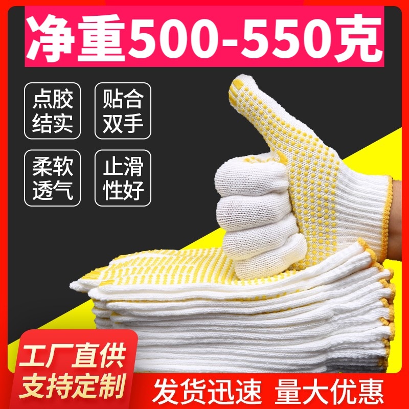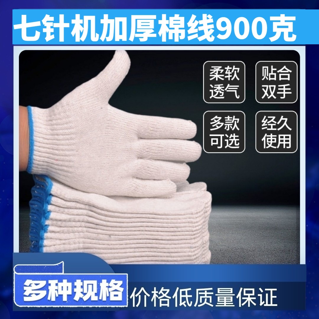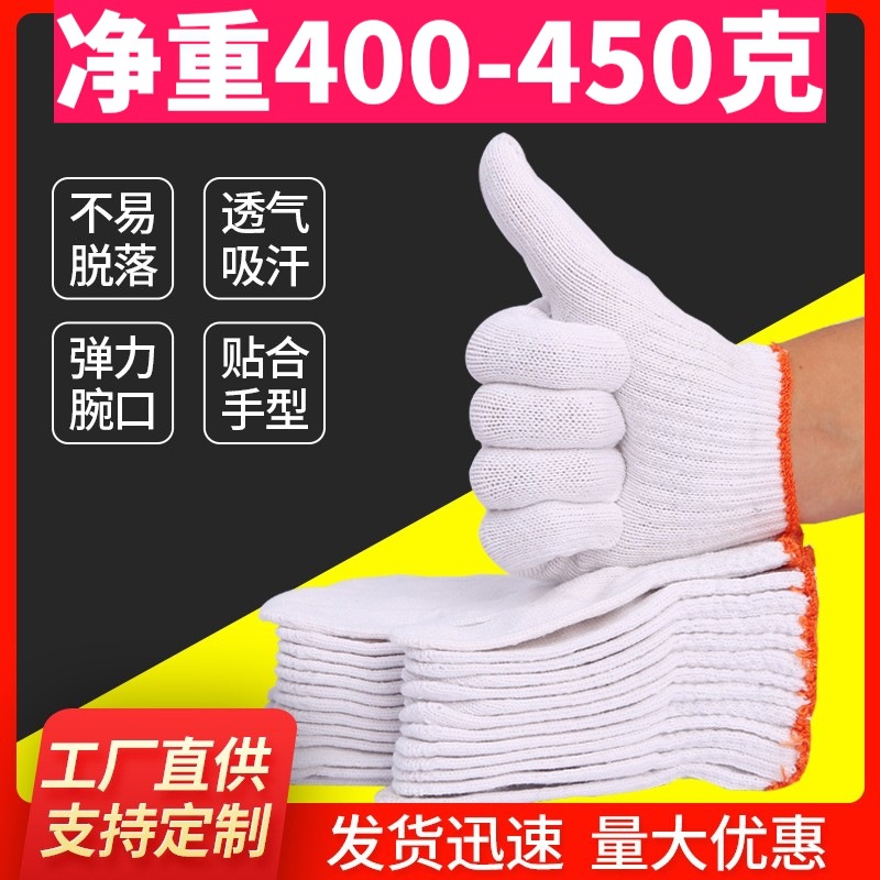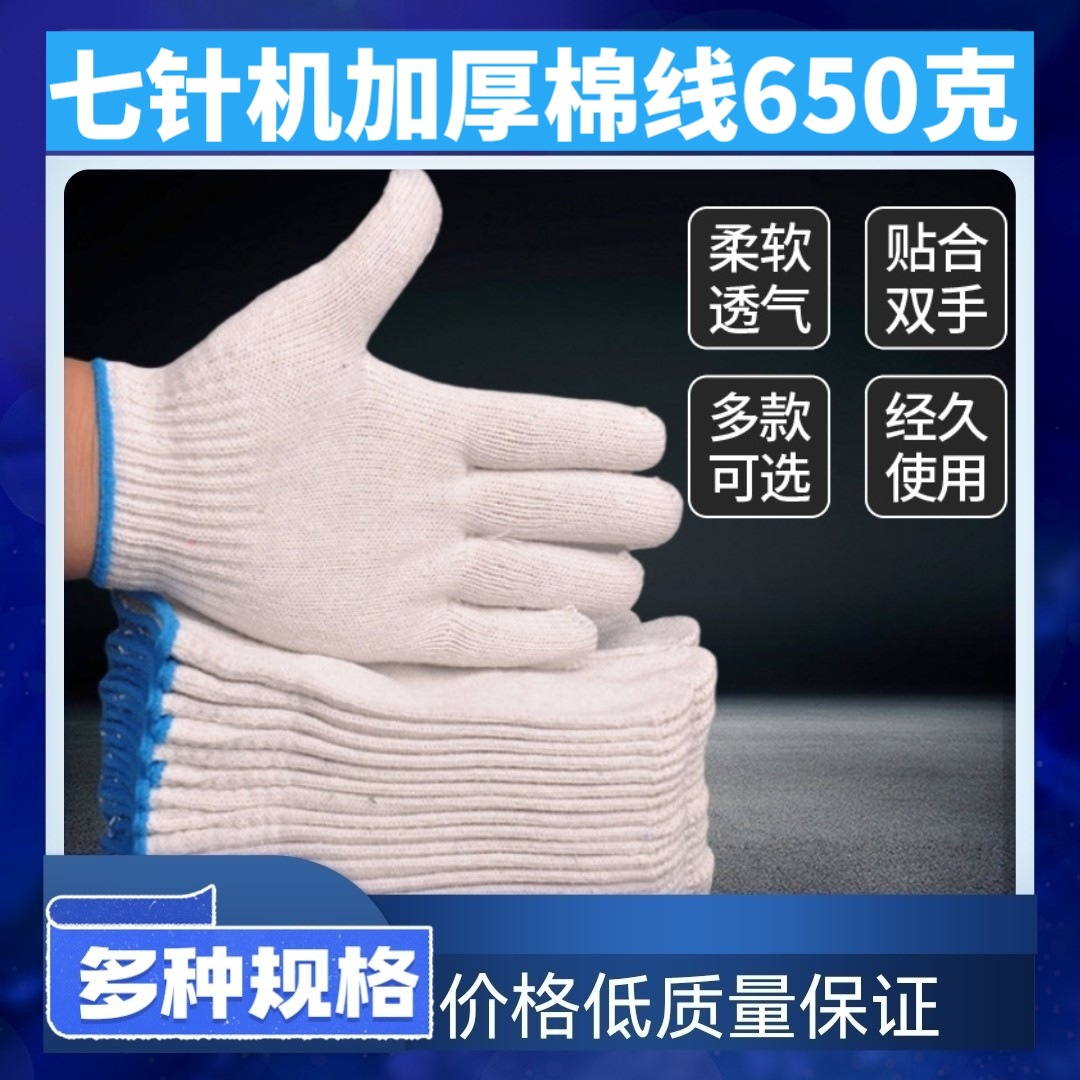 劳保手套黑加丝棉线手套工作加厚尼龙白色纱线手套劳动批发线手套
