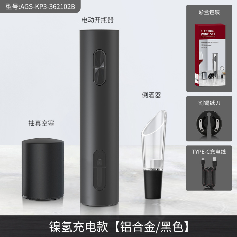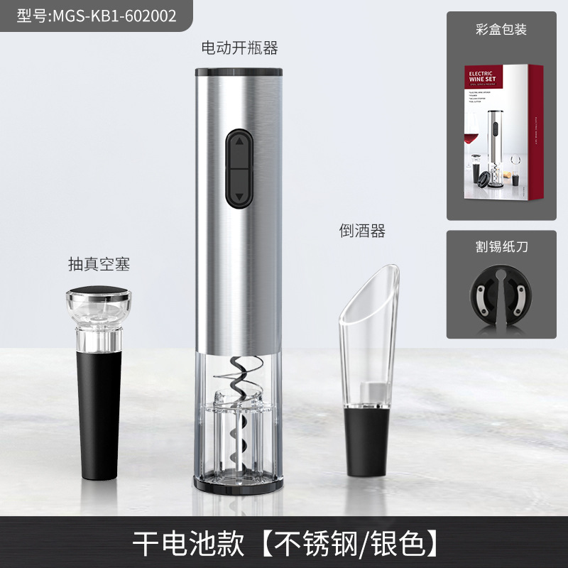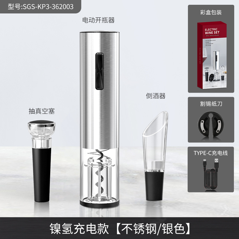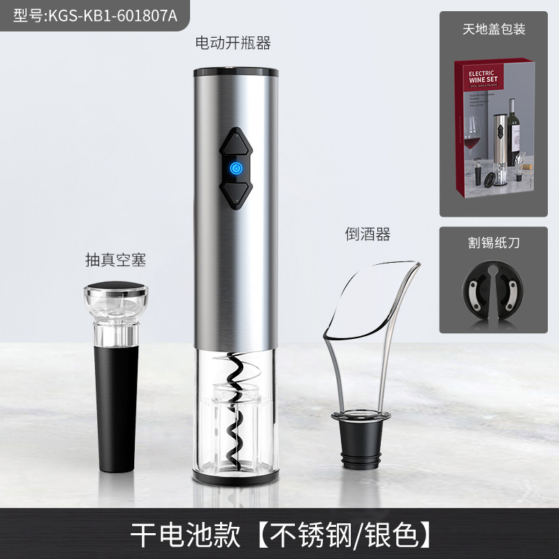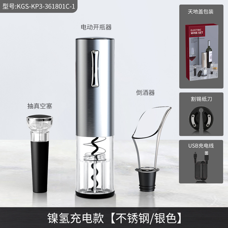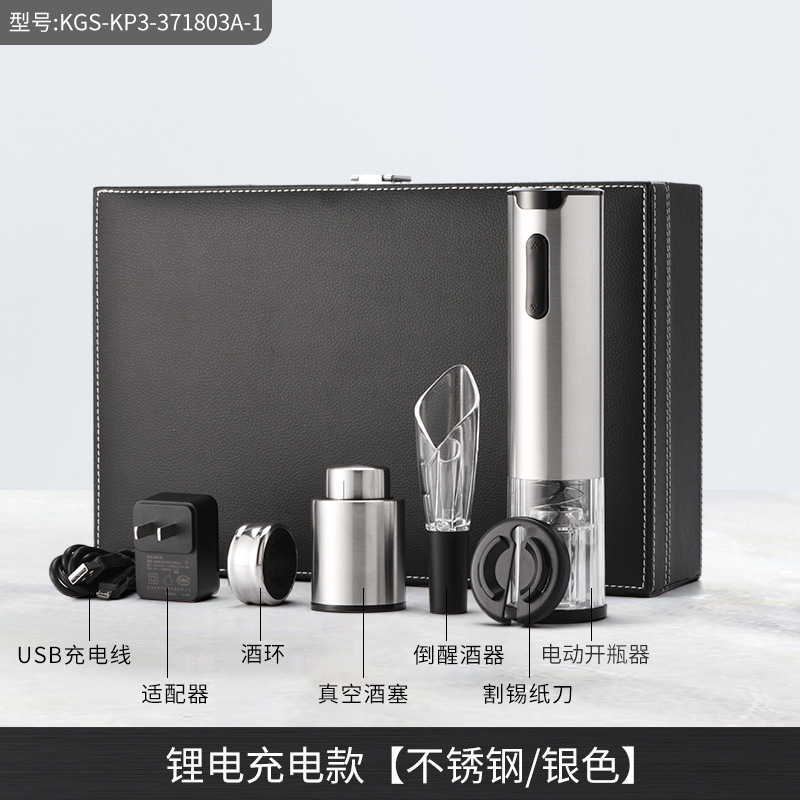 工厂现货科技感不锈钢4合1红酒电动开瓶器套装酒具礼盒套装..