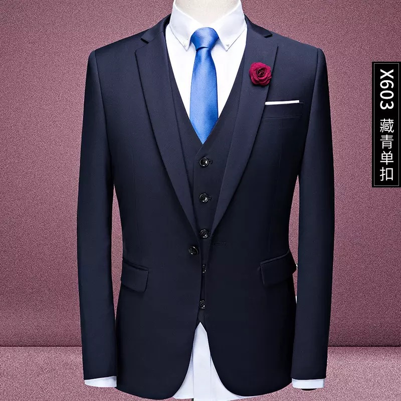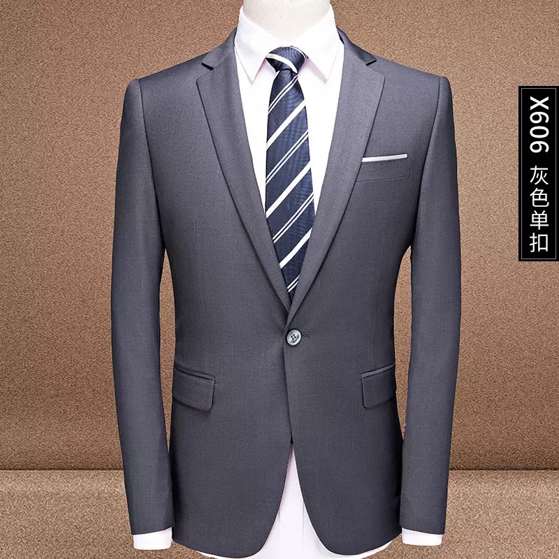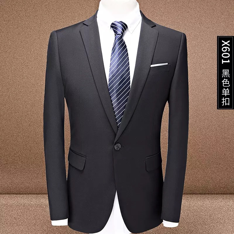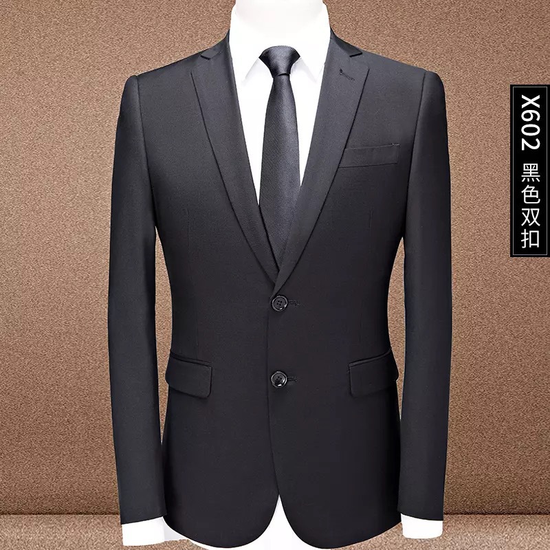 春秋商务绅士男装黑色男士西装套装修身单排一粒扣伴郎黑色单西服