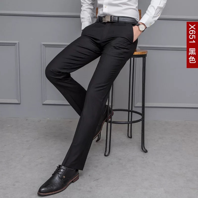 夏季新款黑色西裤男修身版韩中腰直筒免烫职业长裤商务男士西裤