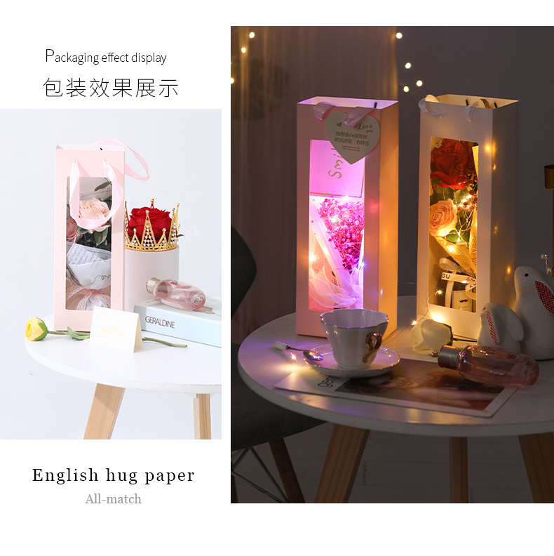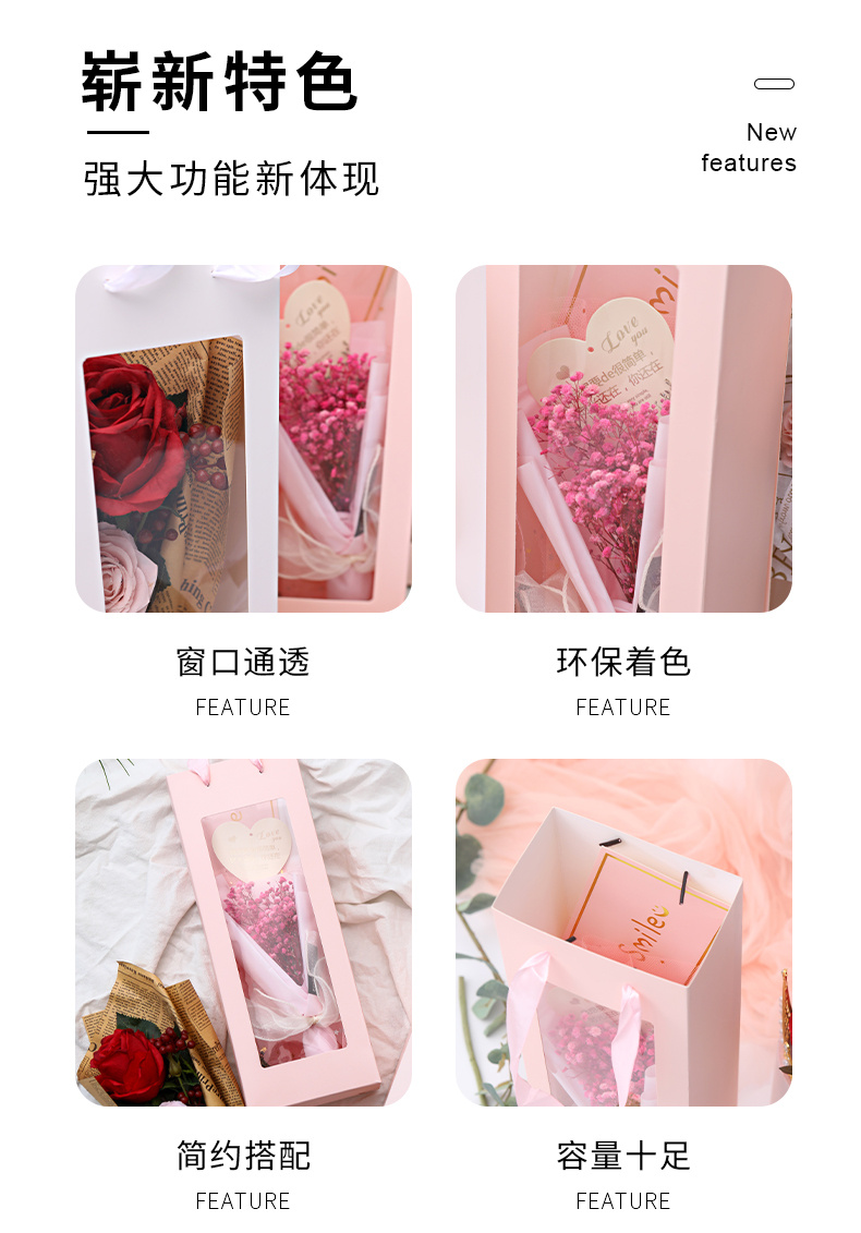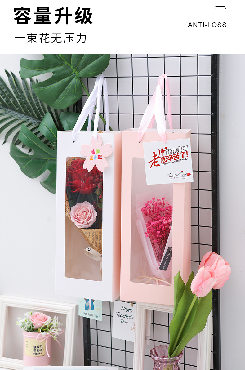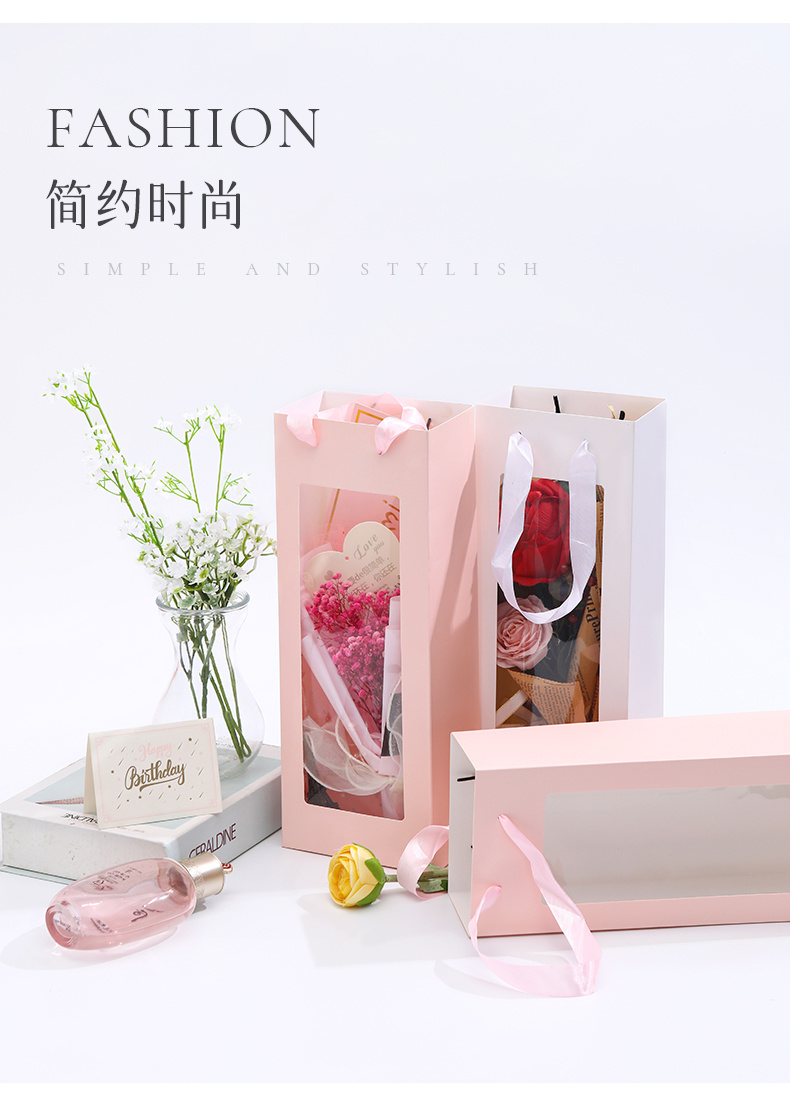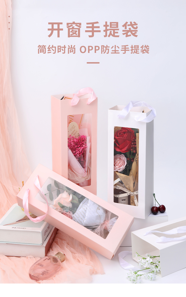 花栖开窗透明花束包装袋网红橱窗礼品袋鲜花手提袋花艺礼物资材店