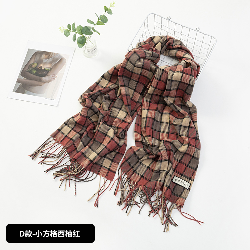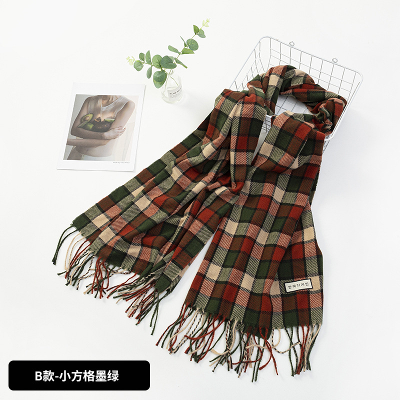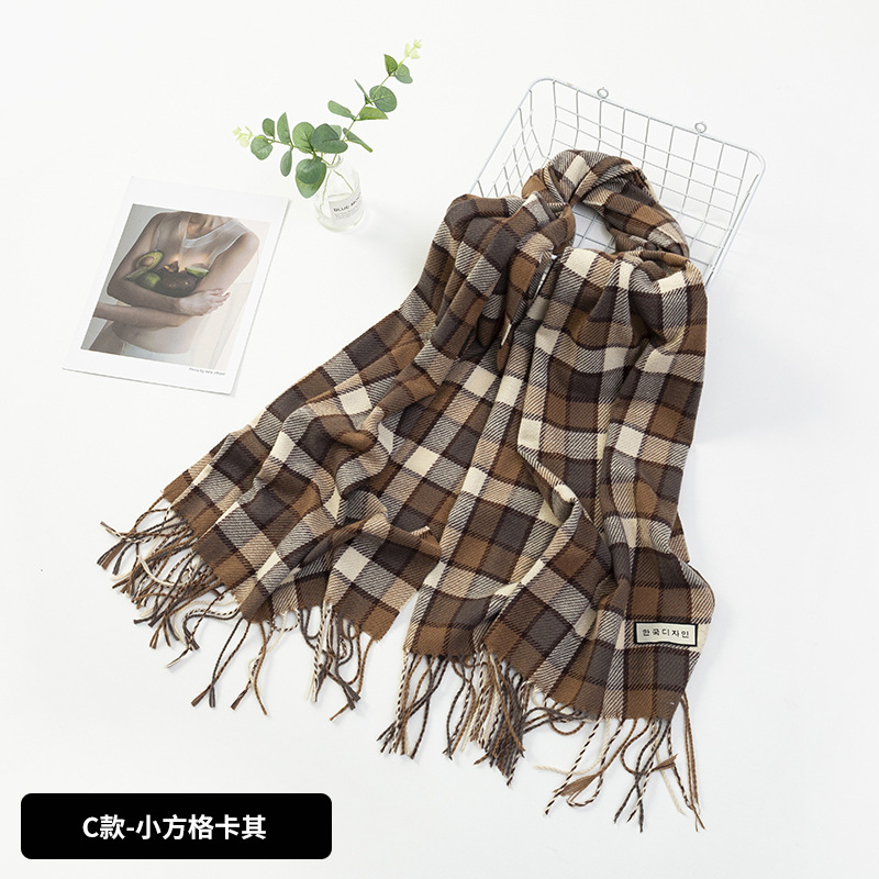 围巾女冬季2021仿羊绒围巾韩国东大门格子围巾秋新款韩版围巾围脖