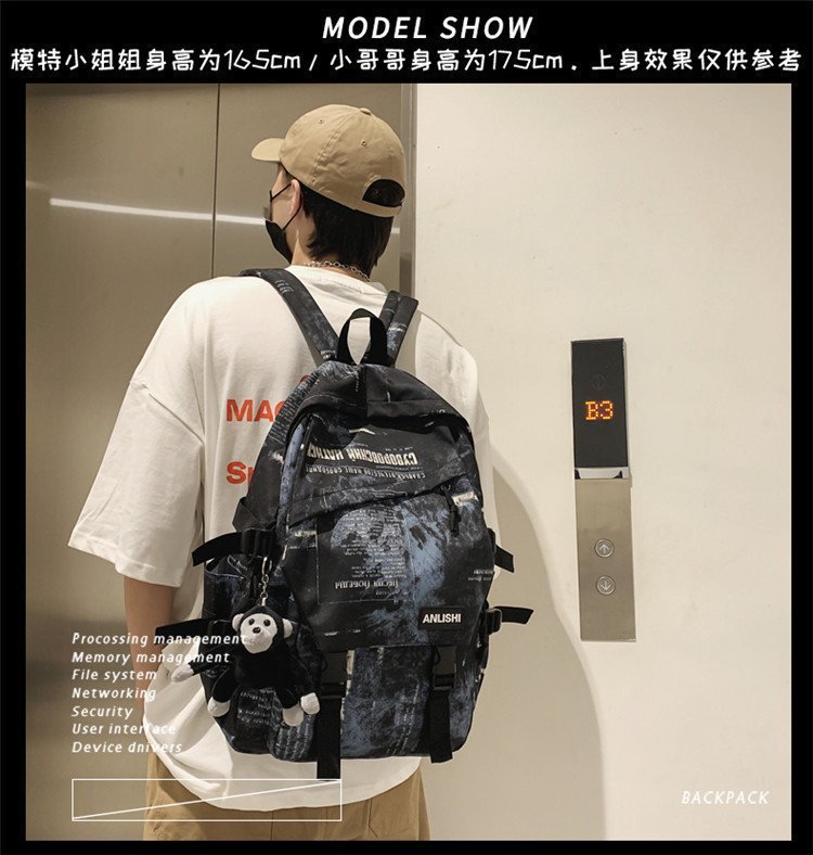 外贸批发书包男初中生高中日系潮酷双肩包中学生大学