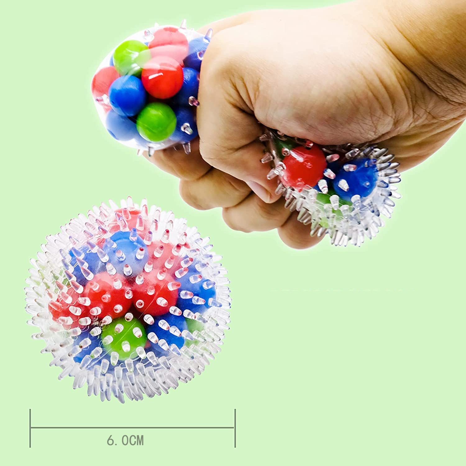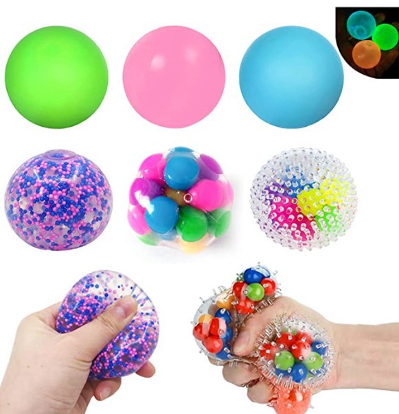 新款水球发泄彩虹七色珠子减压 发泄球 彩带 果胶毛刺球发泄玩具