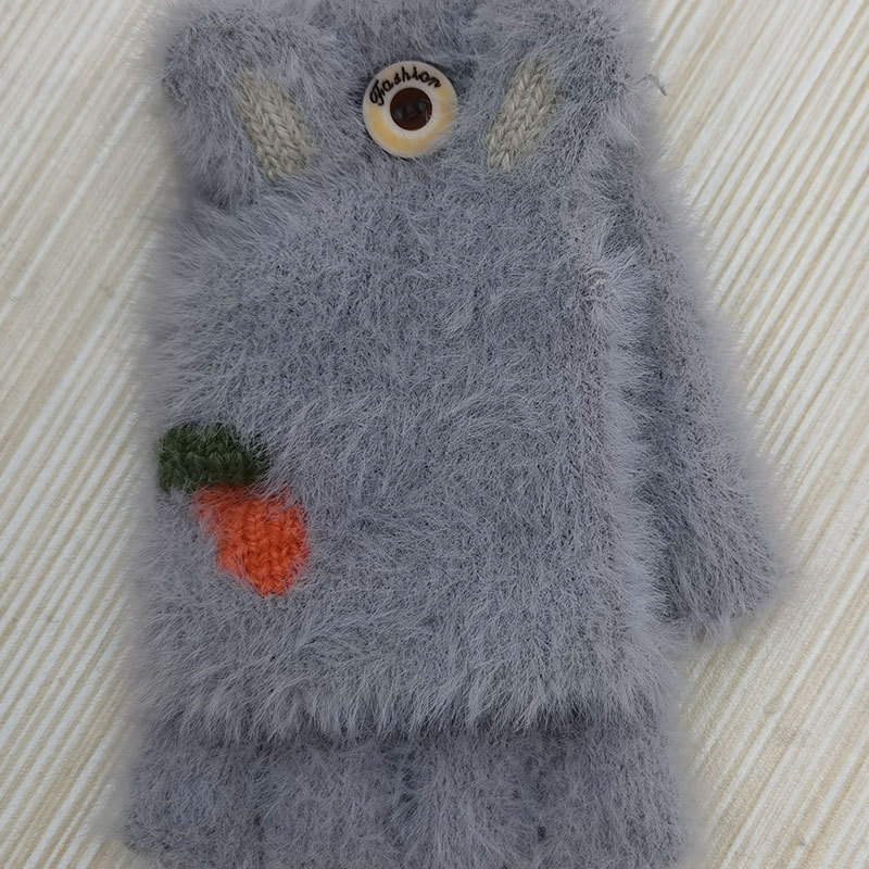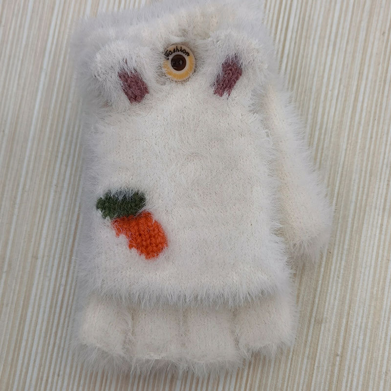 可爱秋冬萝卜兔半指 可爱学生翻盖 水貂绒毛线户外防寒保暖手套