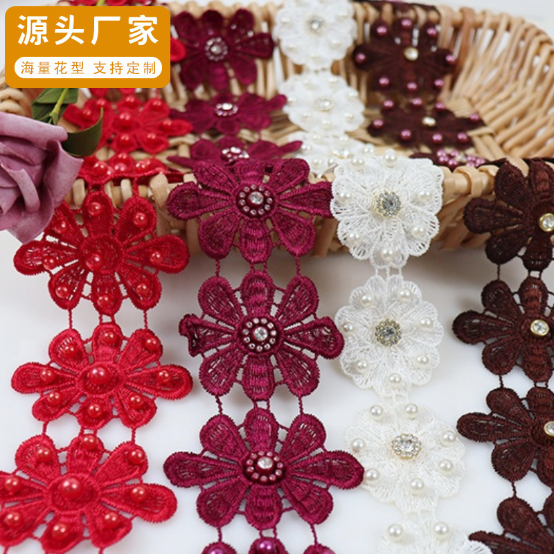 新款钉珠刺绣花边 越布悠刺绣 3D钉珠绣花 服装辅料 水溶窗帘花边
