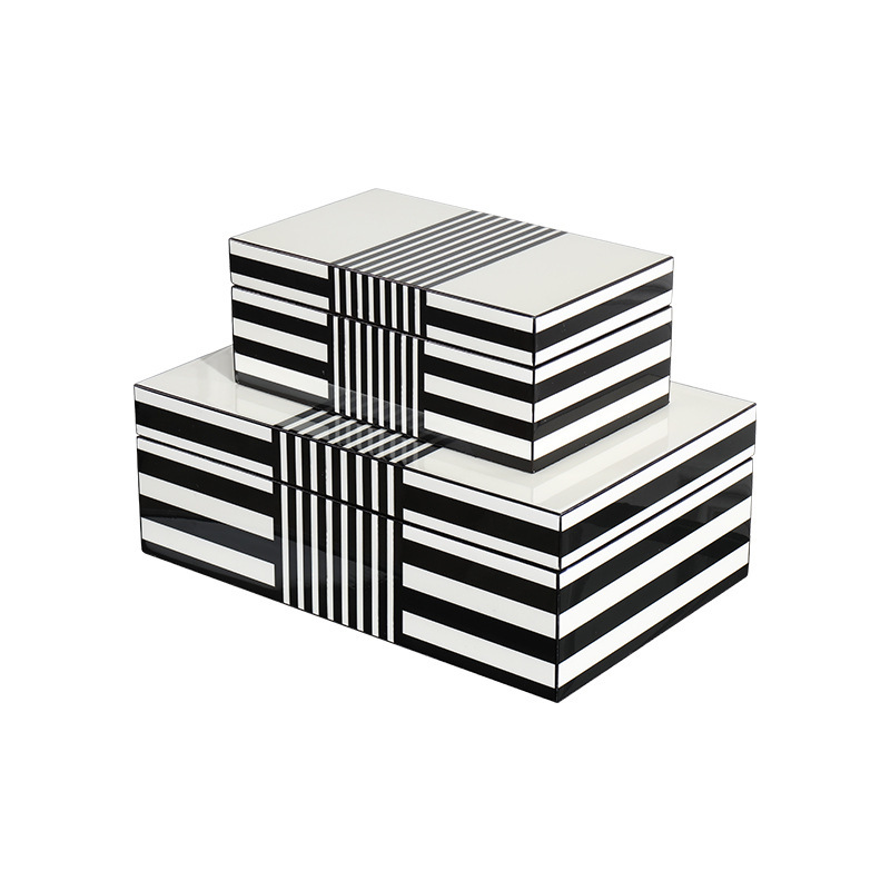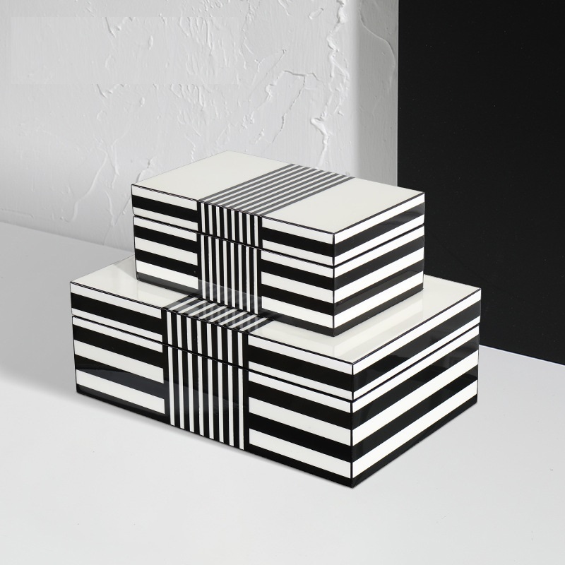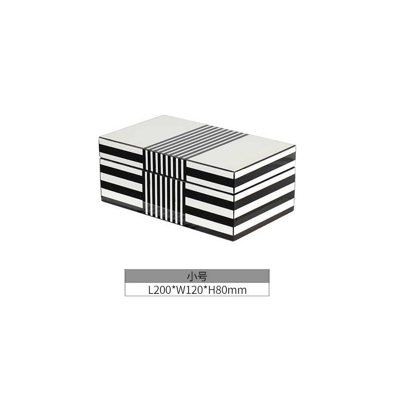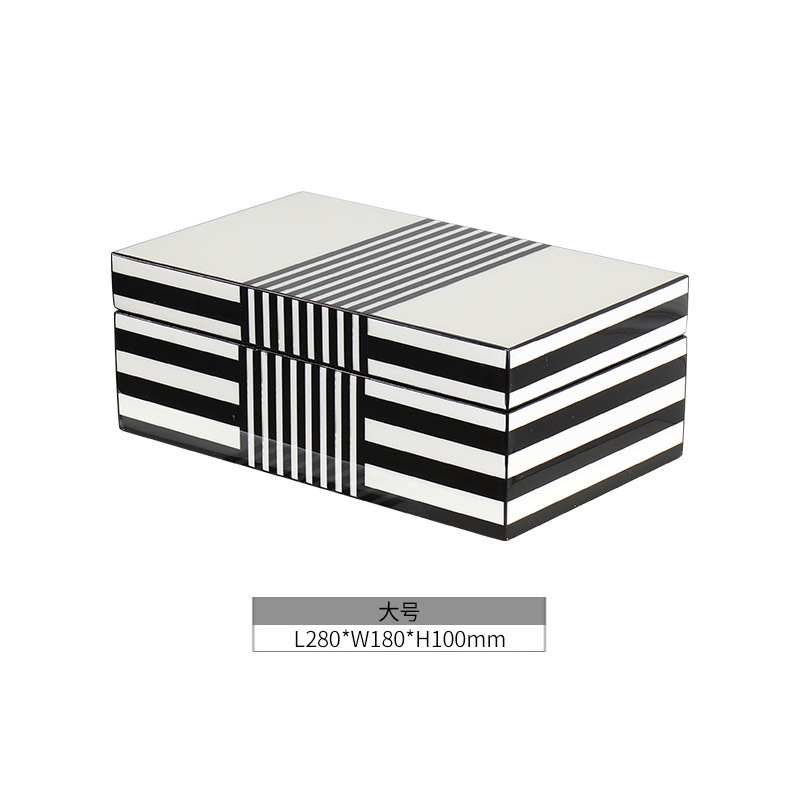 样板间首饰盒木制烤漆黑白几何条纹收纳储物盒衣帽间梳妆台装饰品