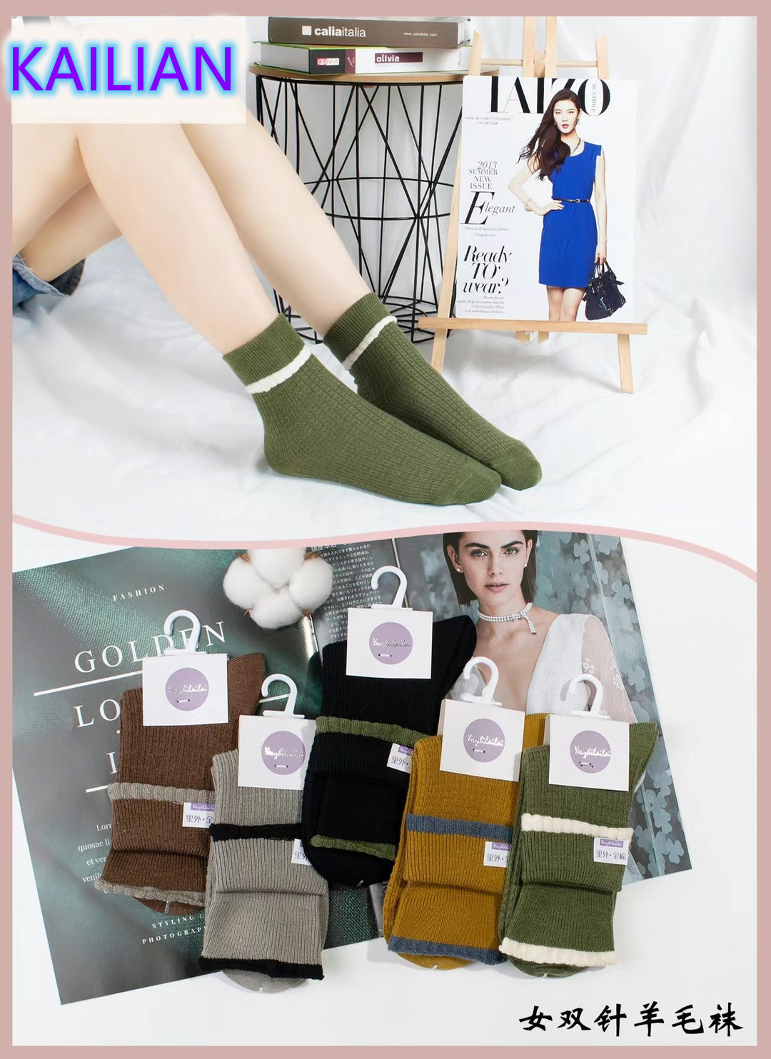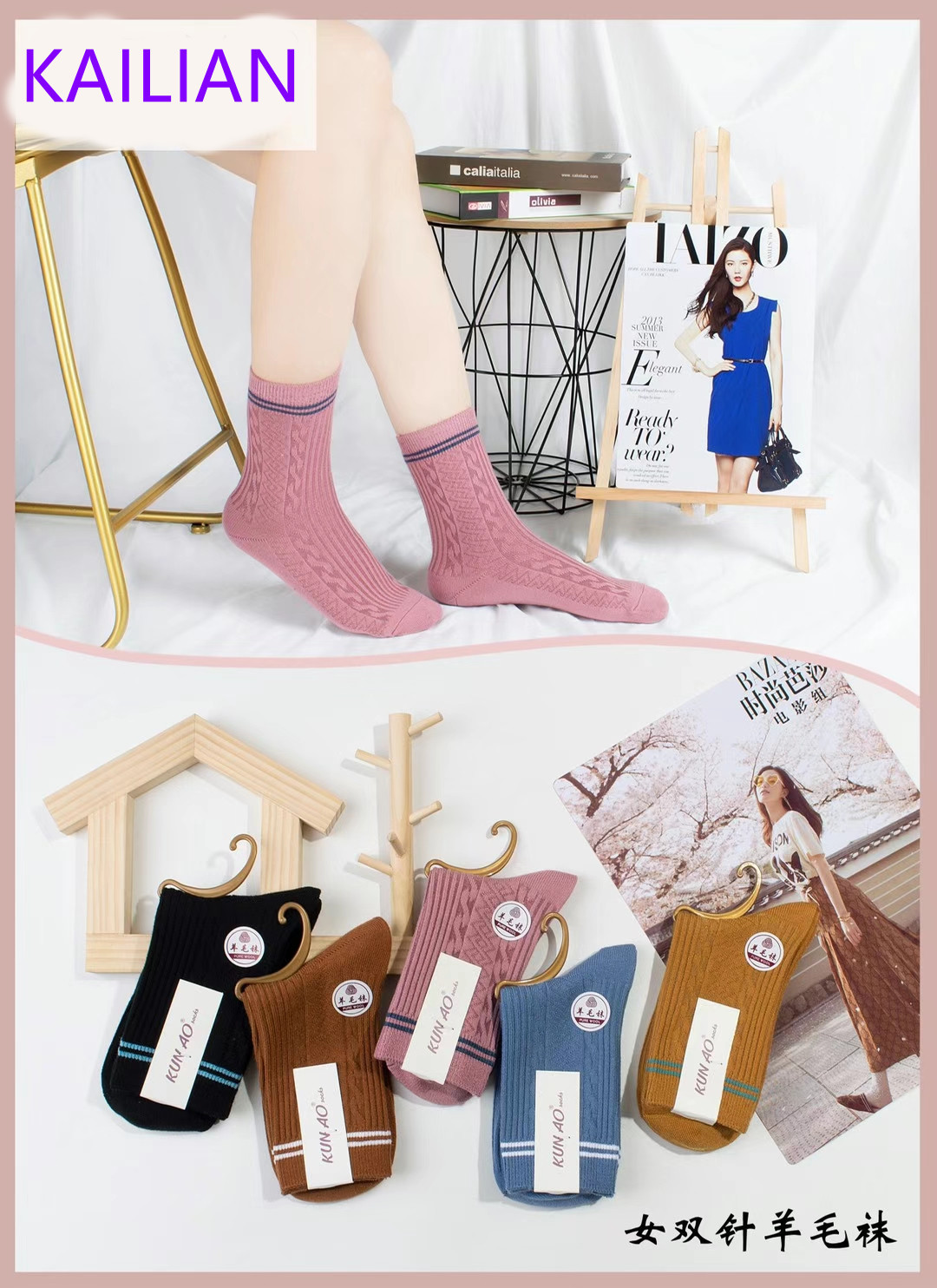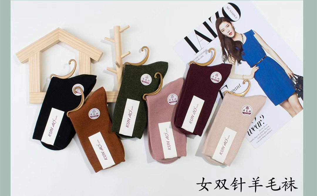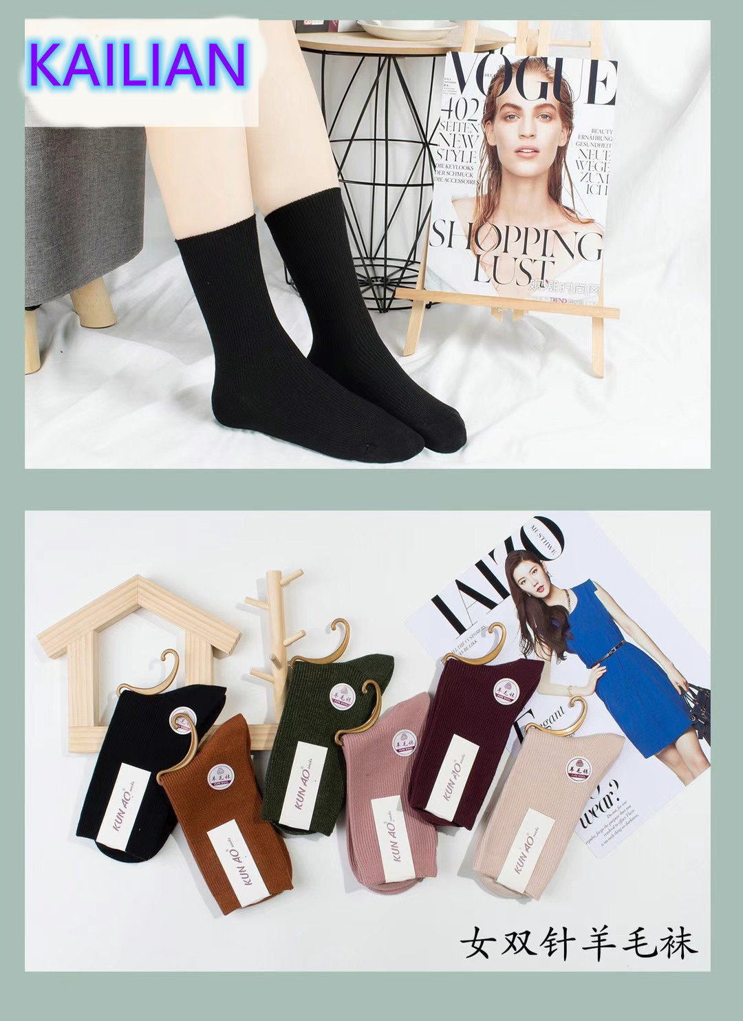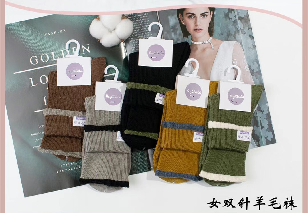 冬季新款袜子女中筒羊毛袜羊绒袜保暖纯色日系复古加厚堆堆袜批发