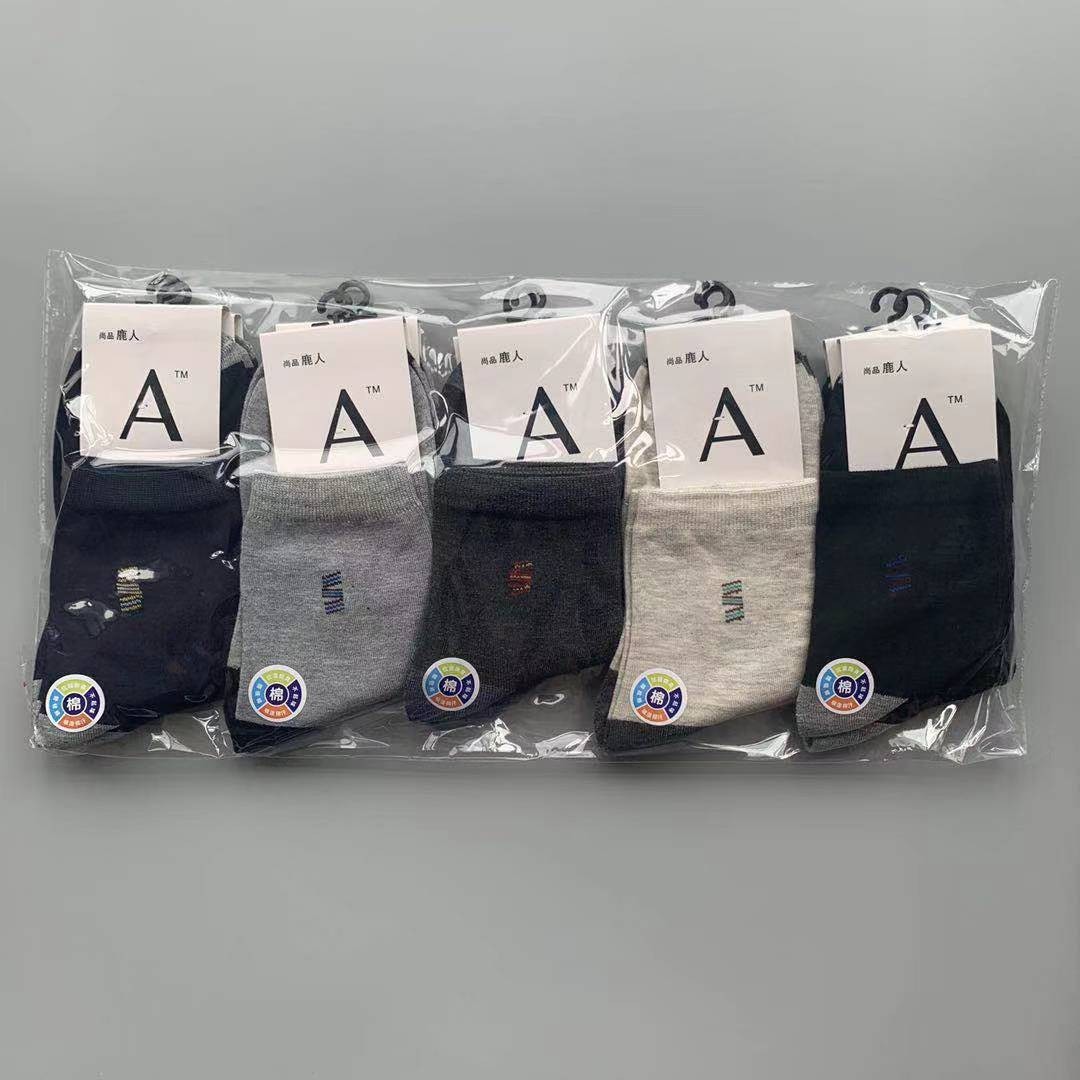 地摊袜子跑量秋冬款A标中筒男袜棉质字母休闲成人袜大量便宜批发