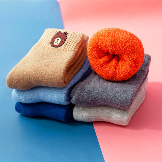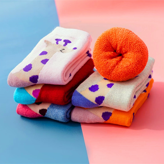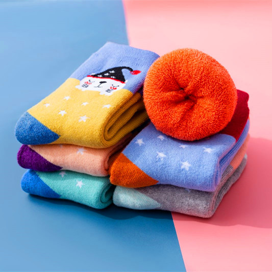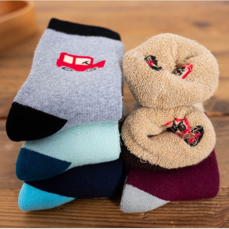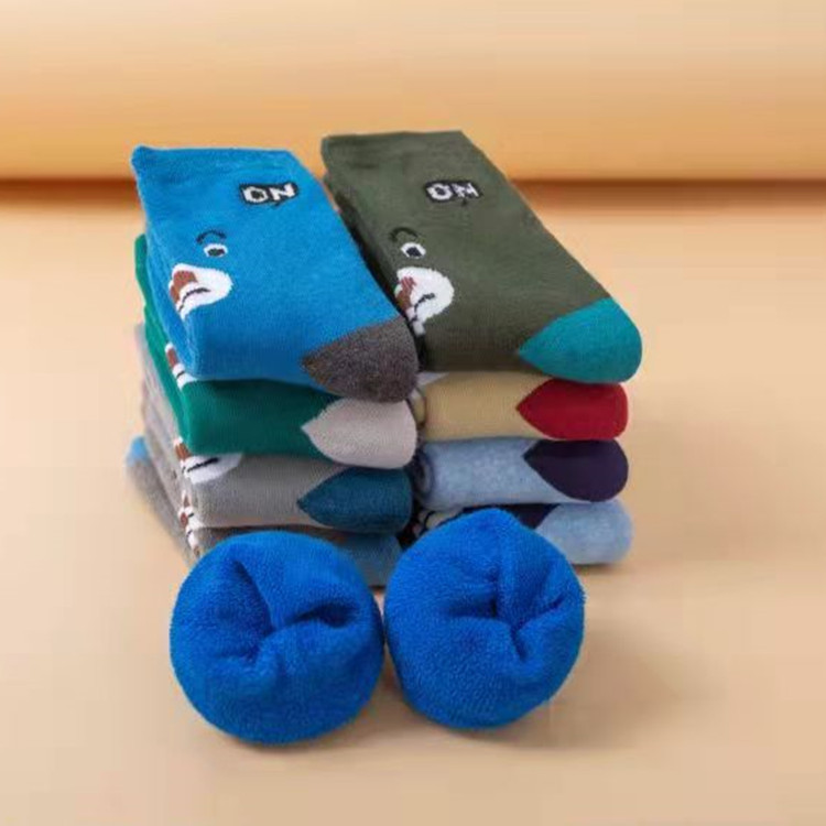 秋冬新款加绒加厚儿童毛圈袜幼儿中筒卡通毛巾袜子