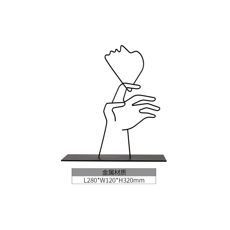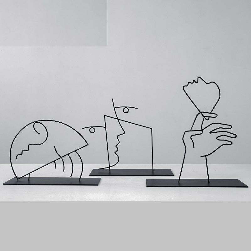 现代简约客厅黑色金属线条摆件家居样板间书柜创意抽象装饰品摆设