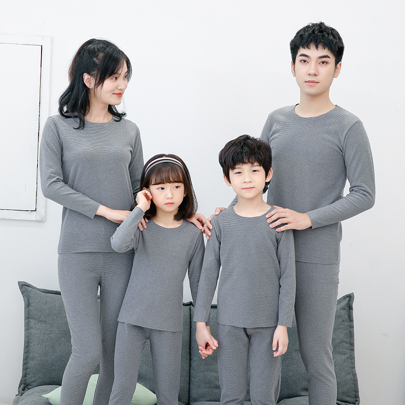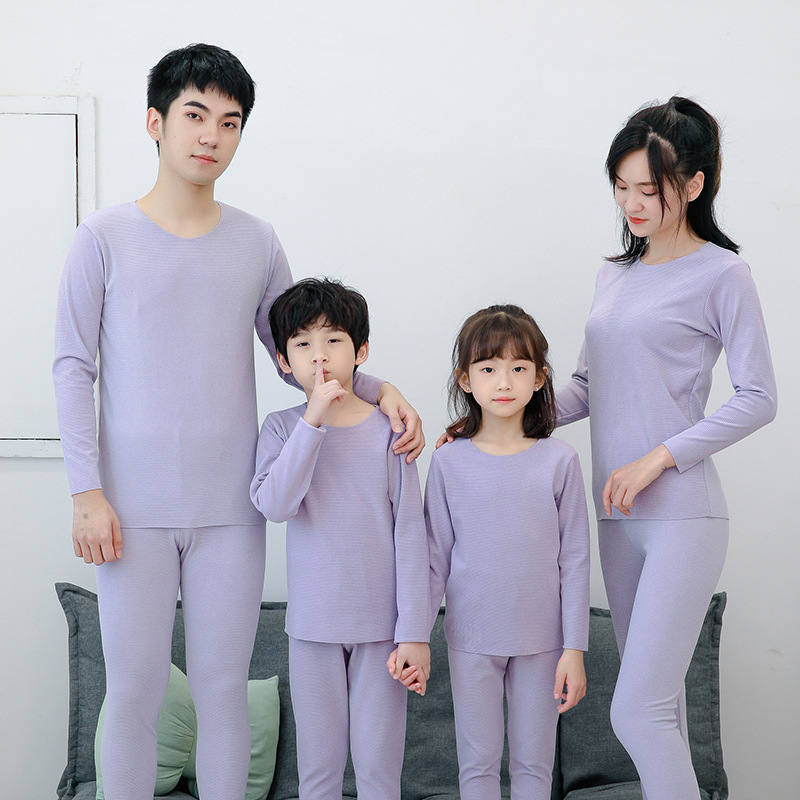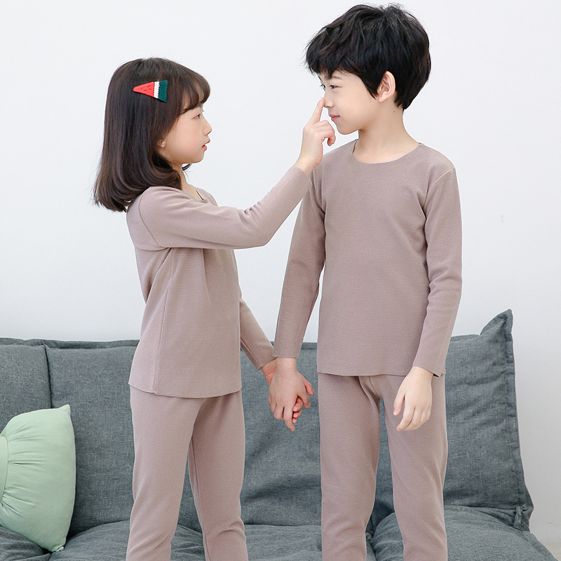 儿童保暖内衣套装女无痕双面磨毛发热纤维细纹男童秋衣裤批发代发