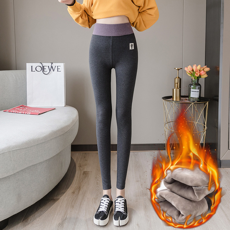 新款秋冬季加绒裤外穿灰色打底裤女外穿高腰大码胖mm小脚秋裤棉裤