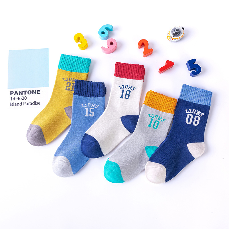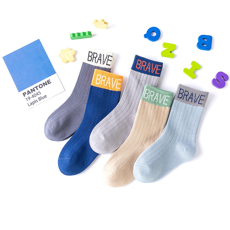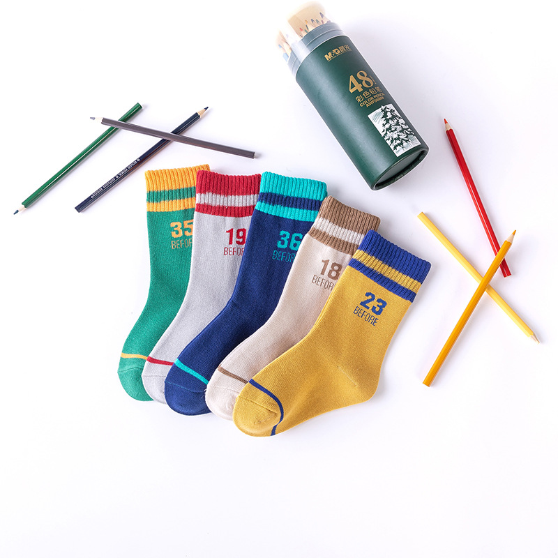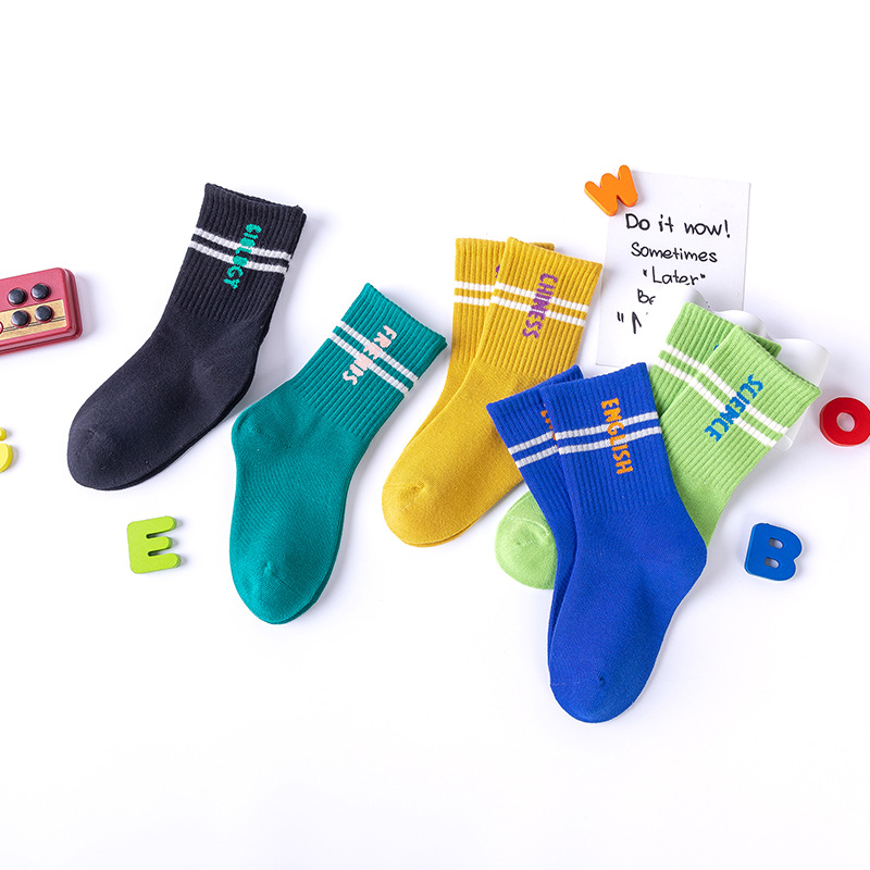 儿童袜子21春秋新款卡通中大童棉袜韩版秋冬男童女童字母中筒袜潮