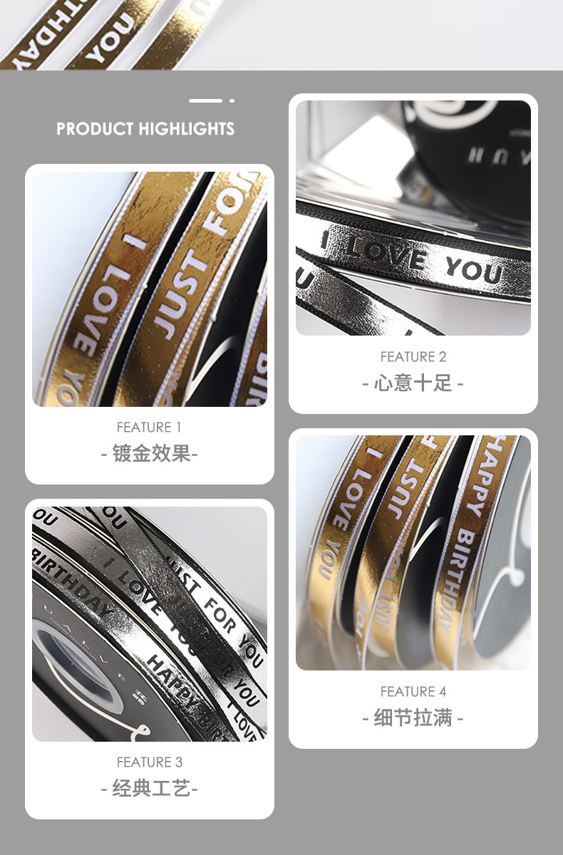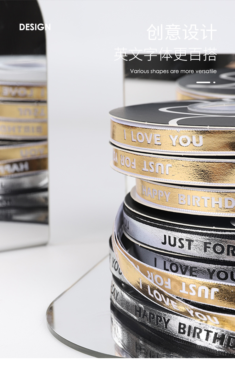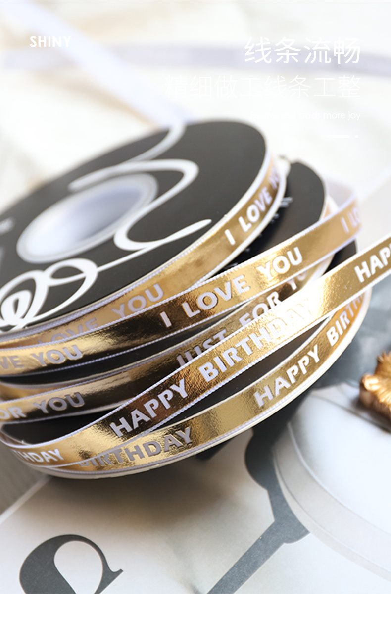 英文小金条丝带礼物包装鲜花包装蛋糕包装DIY手工丝带