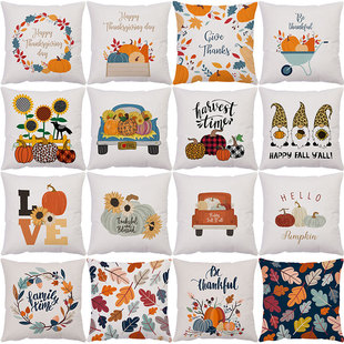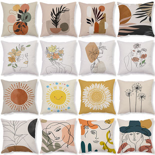 2021跨境春夏季数码印花亚麻抱枕套柠檬字母沙发靠枕套床头靠垫