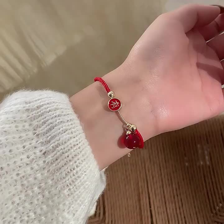 饰品生肖虎镶钻水晶编织手链本命年时尚手绳中国风虎年红绳手饰女