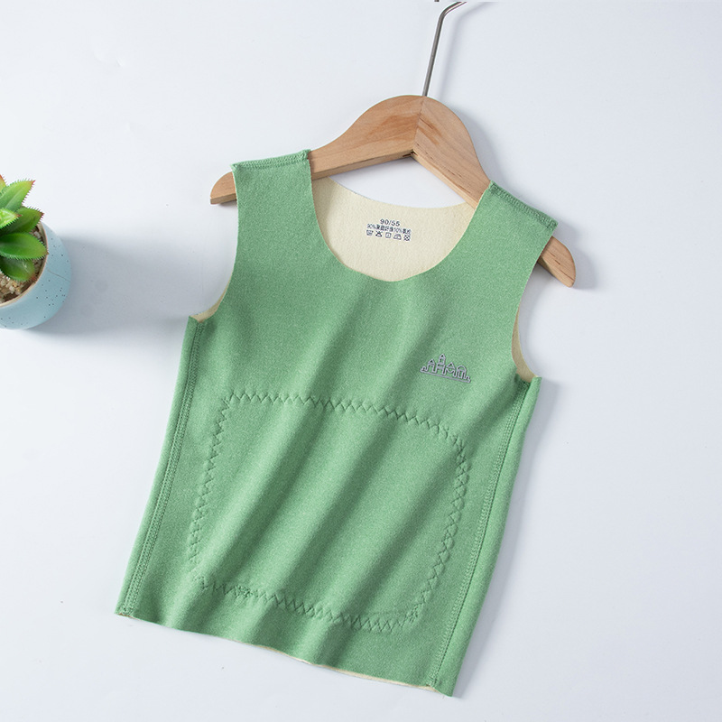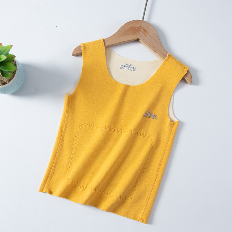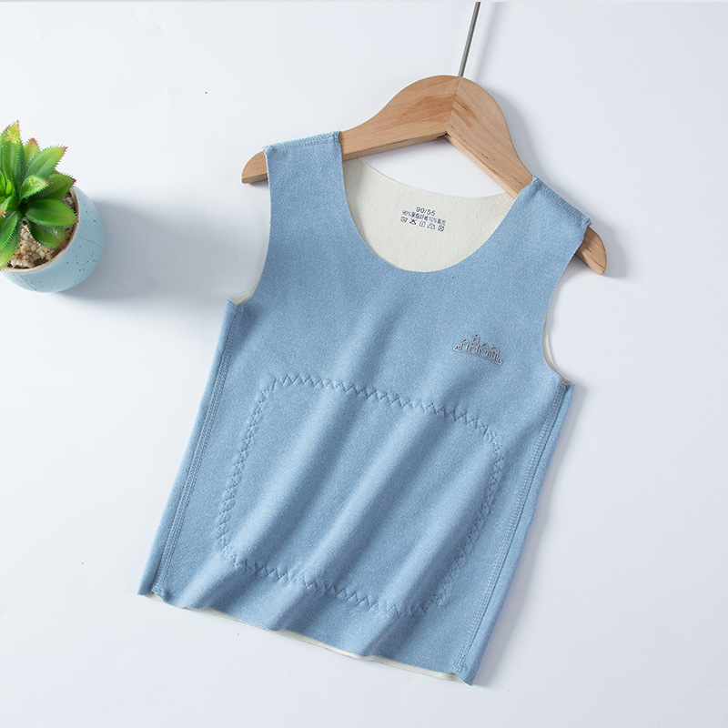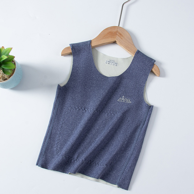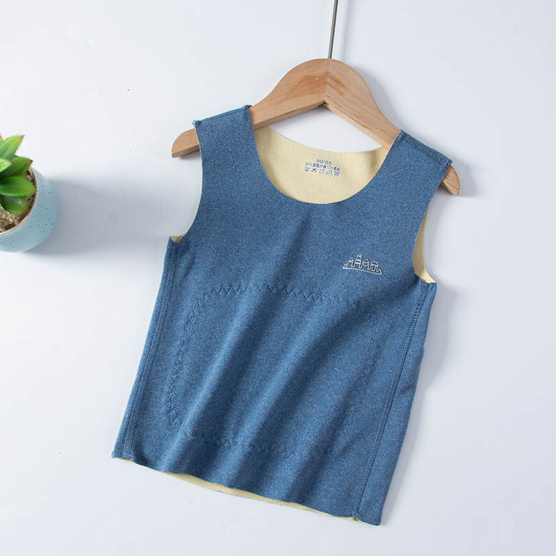 韩版秋冬儿童贴片护肚背心男女童双面磨毛打底上衣薄绒德保暖马甲