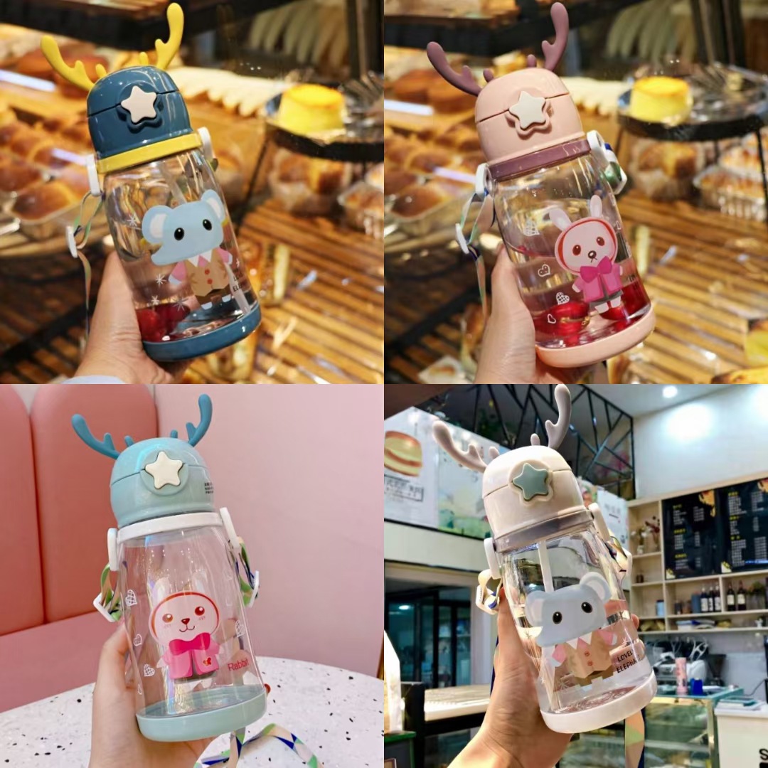 儿童水杯幼儿园小学生宝宝防摔杯子可爱少女学生鹿角水壶袋吸管