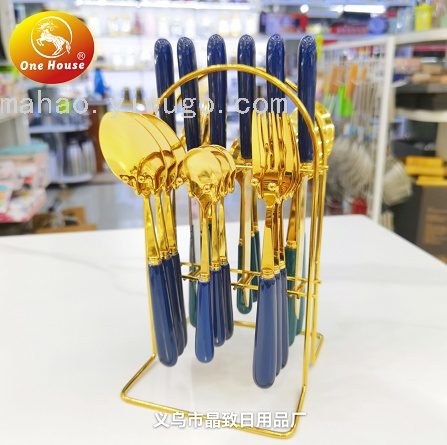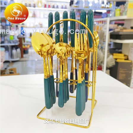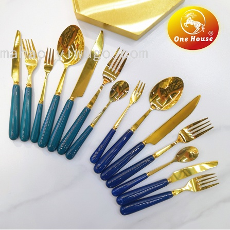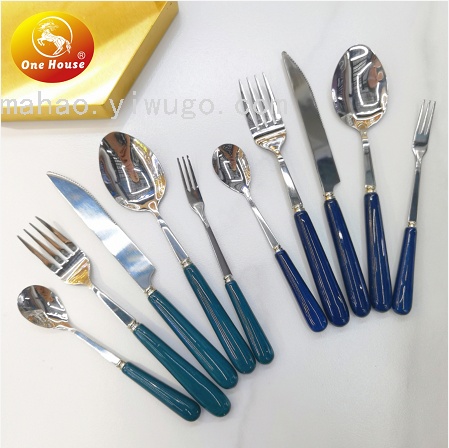 晶致热销410不锈钢镀金西餐餐具陶瓷大理石手柄高档餐具