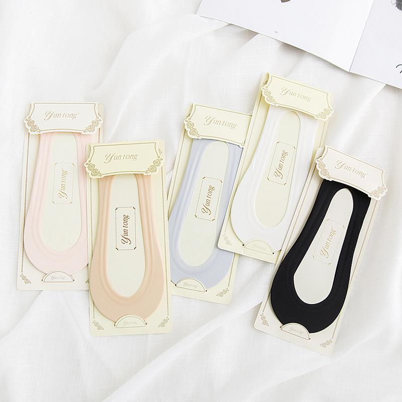 A女士冰丝无痕隐形袜 浅口船袜 纯色防滑硅胶棉底袜子socks批发