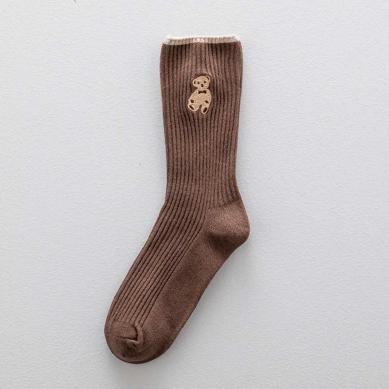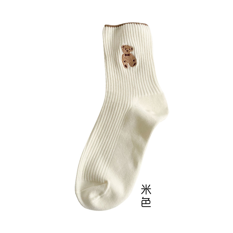 袜子女中筒袜秋冬季新款日系学院风泰迪小熊袜韩版潮百搭运动长袜