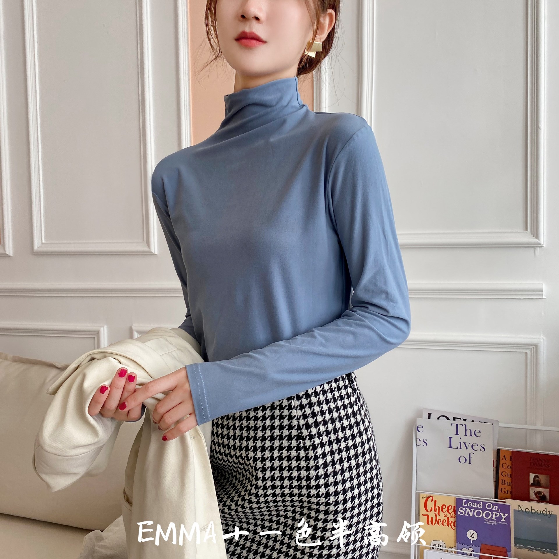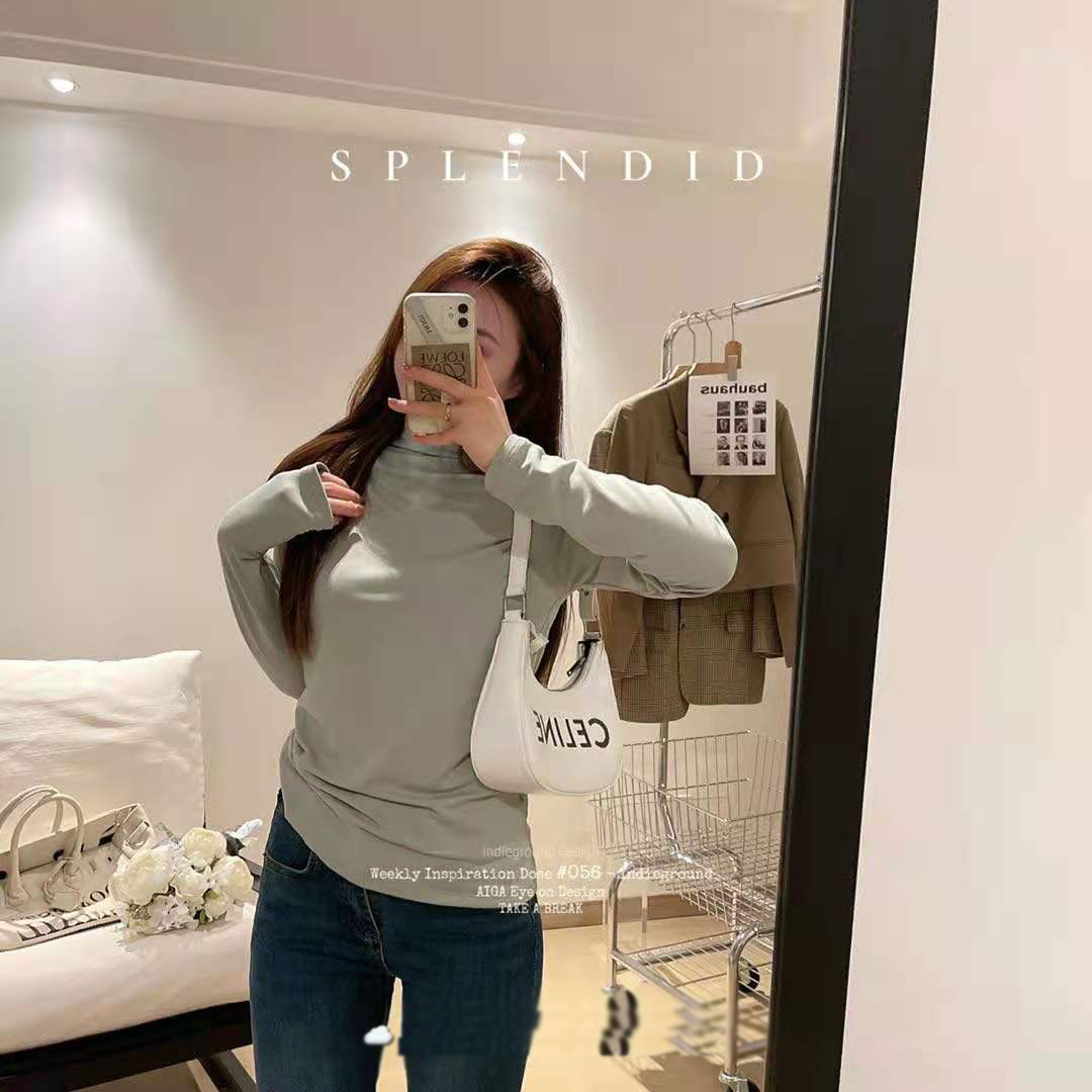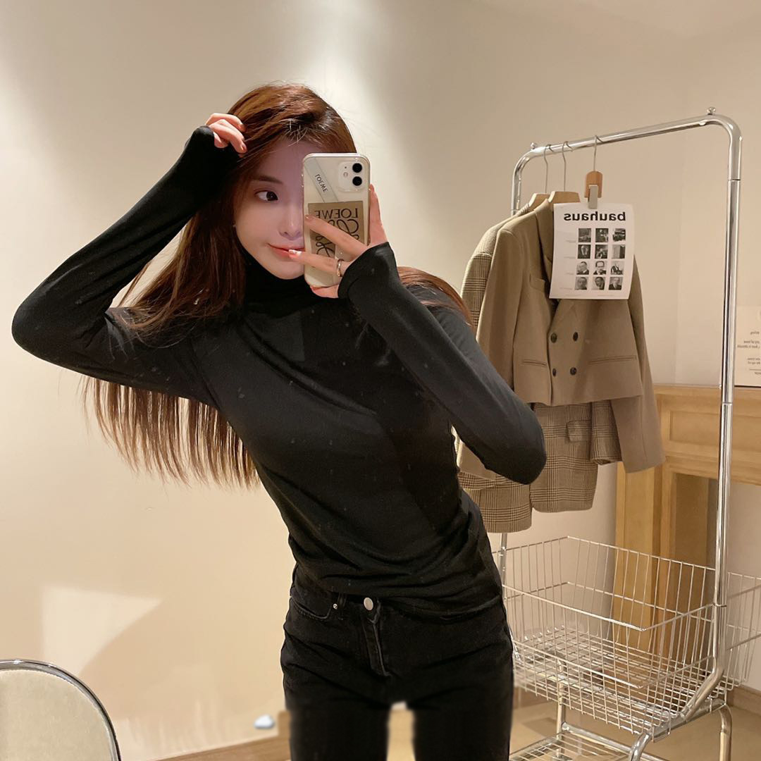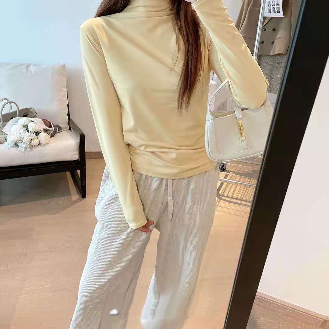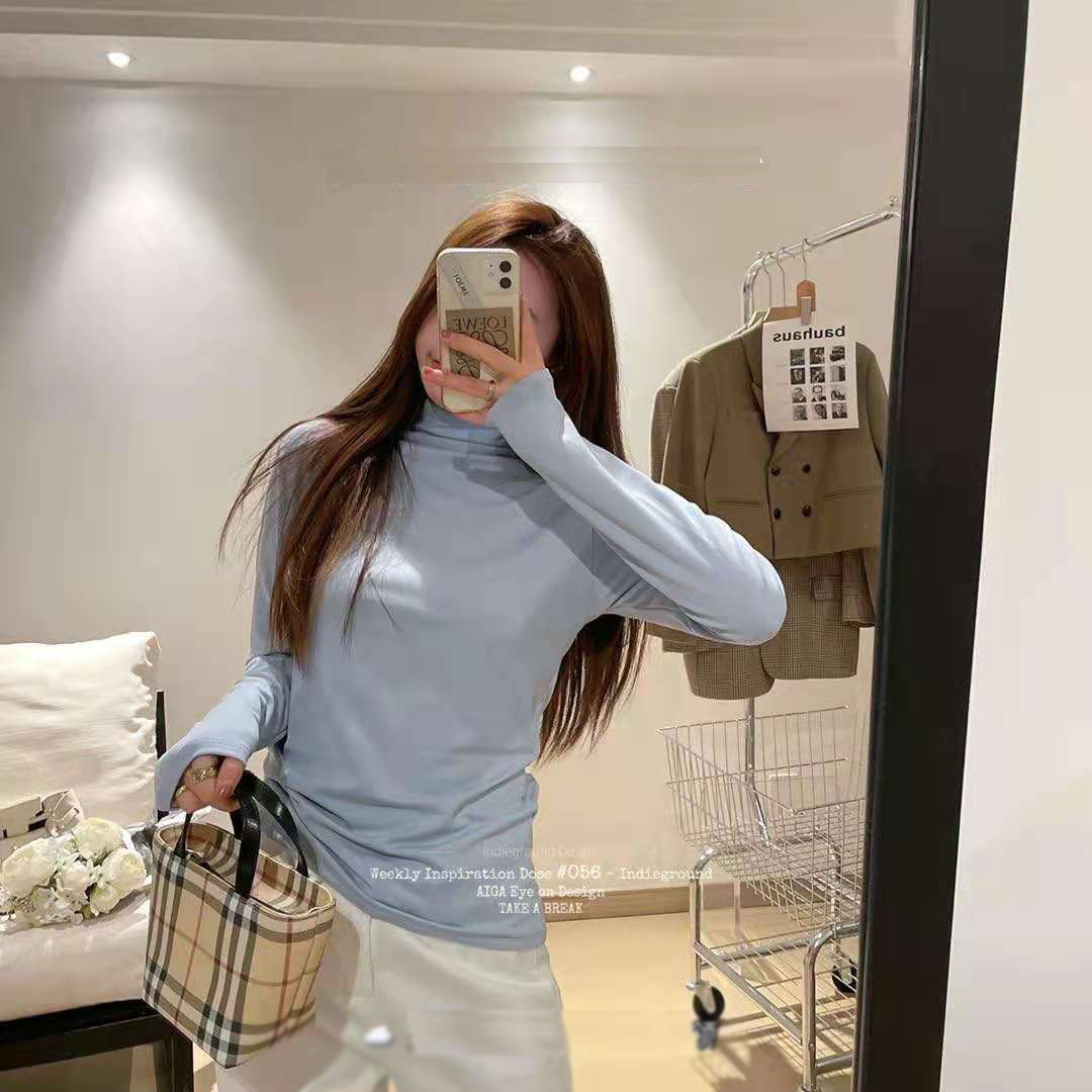 EMMA十一色半高领加绒打底衫弹力修身百搭长袖t恤纯色女内搭上衣