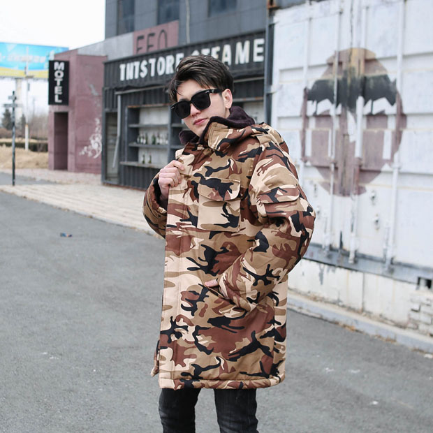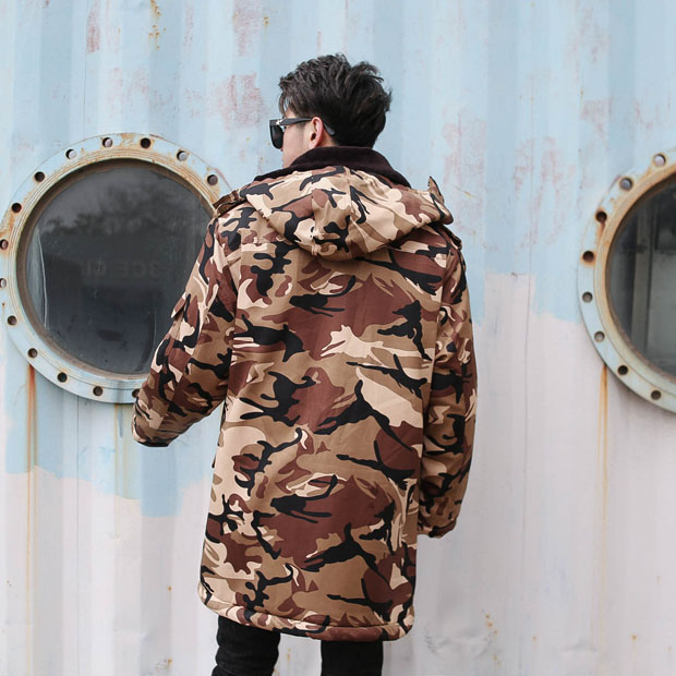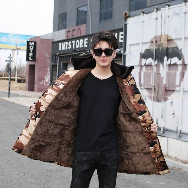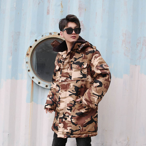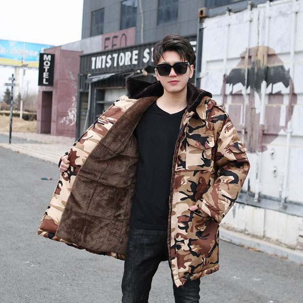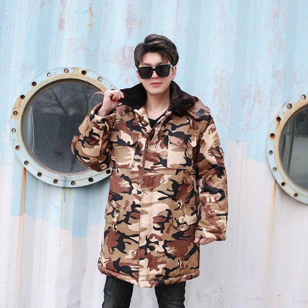 中长款加绒加厚迷彩棉大衣男冬季劳保棉服保暖防寒服外套棉袄
