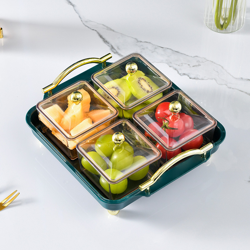 简约轻奢风小吃碟网红塑料果盘分格年货零食盘家用点心糖果干果盒