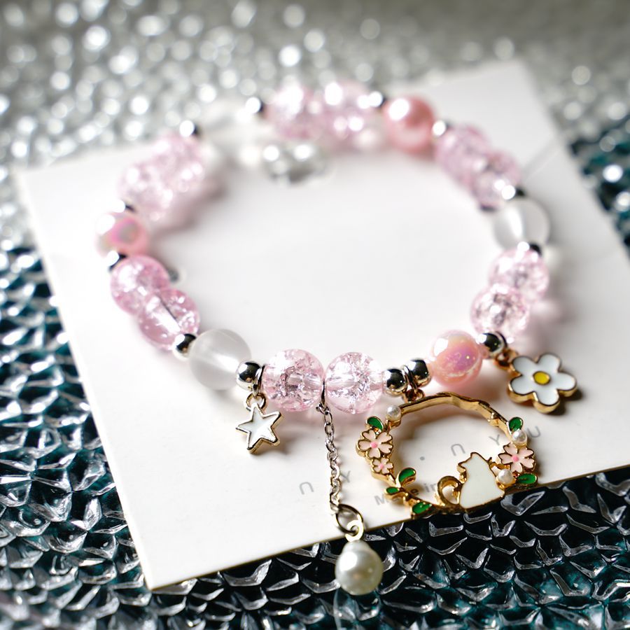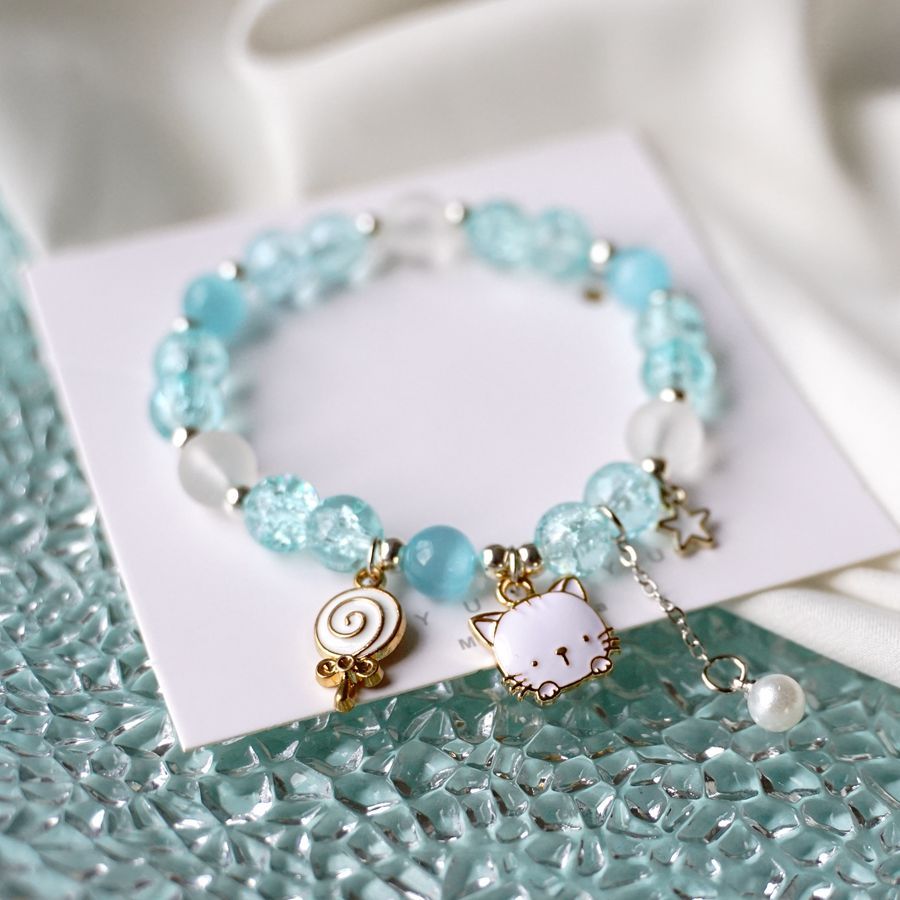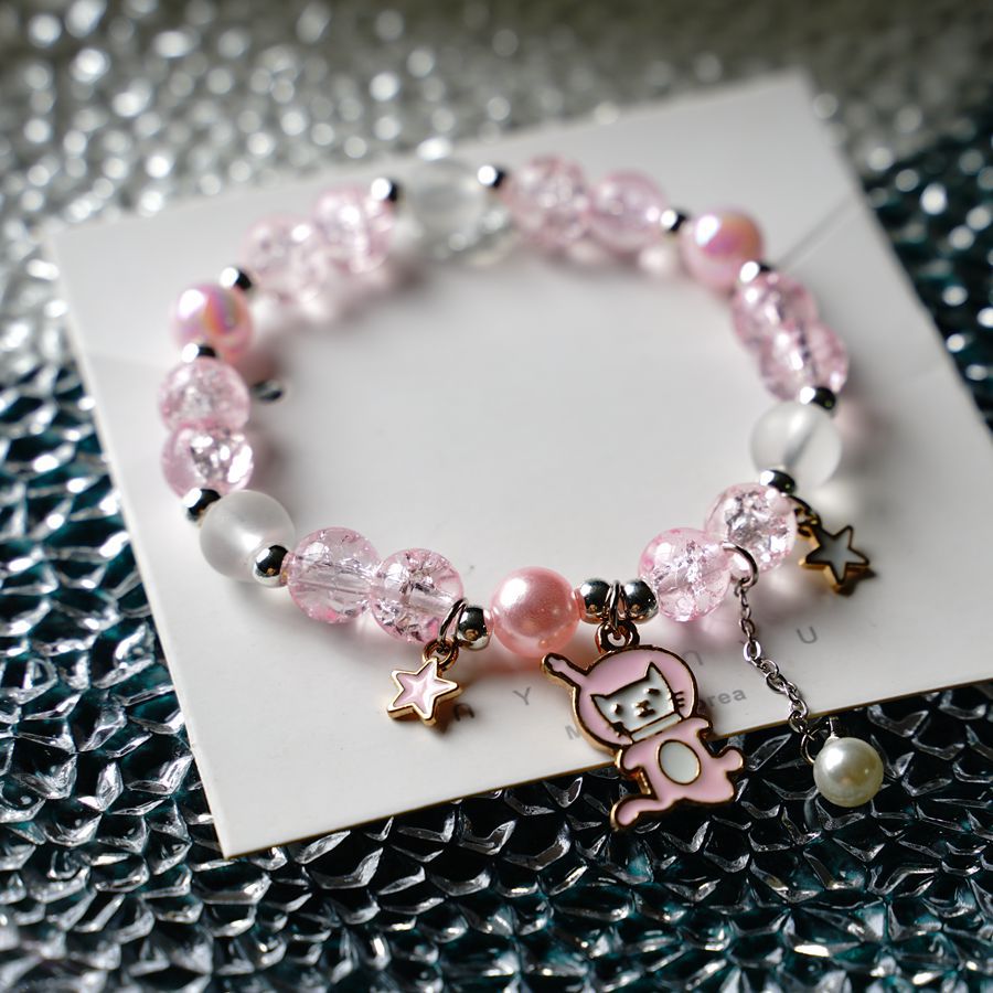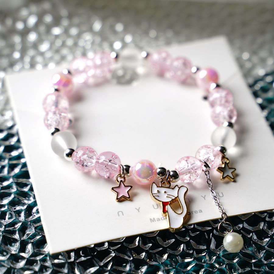 新款文艺气质闺蜜爆花晶手链女 小众设计日韩小猫咪手串跨境饰品