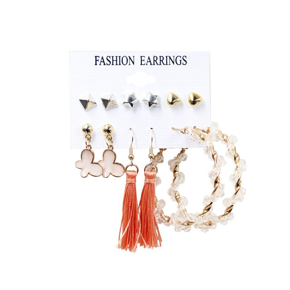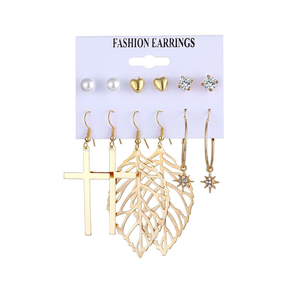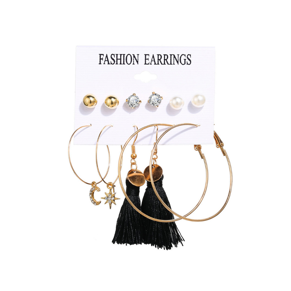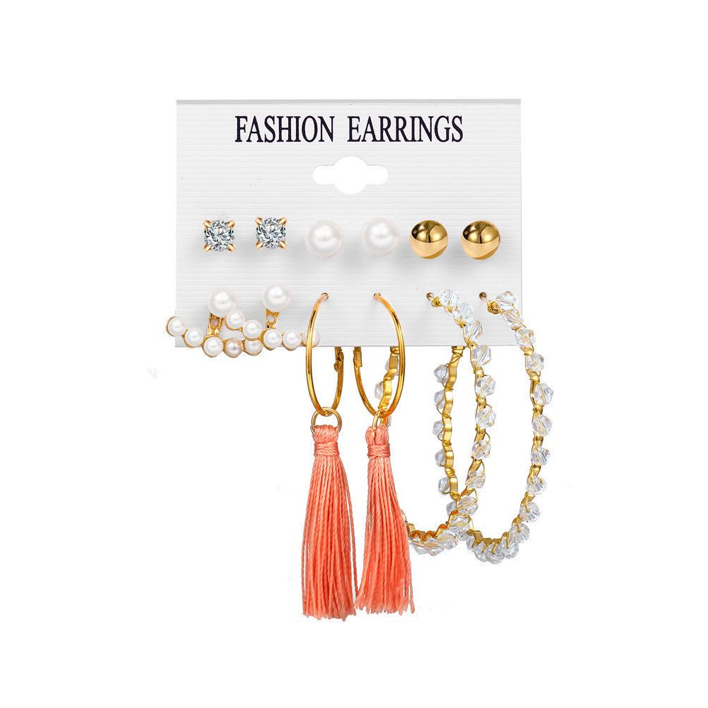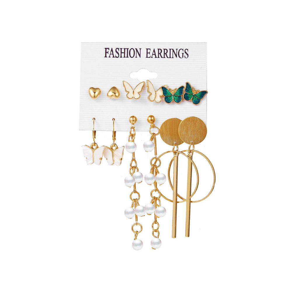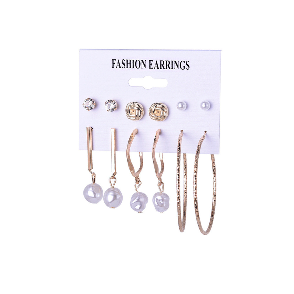 2021秋冬欧美跨境新款个性合金珍珠9对耳环 气质流苏叠戴风耳饰