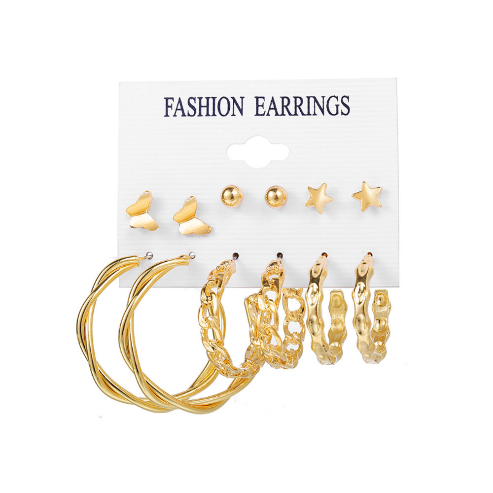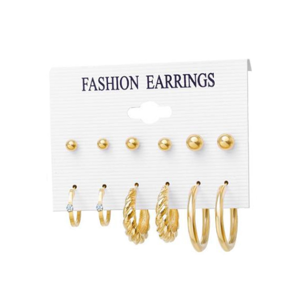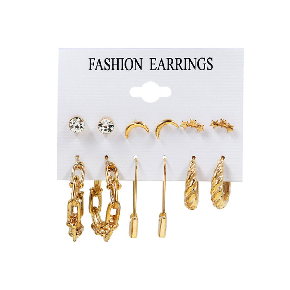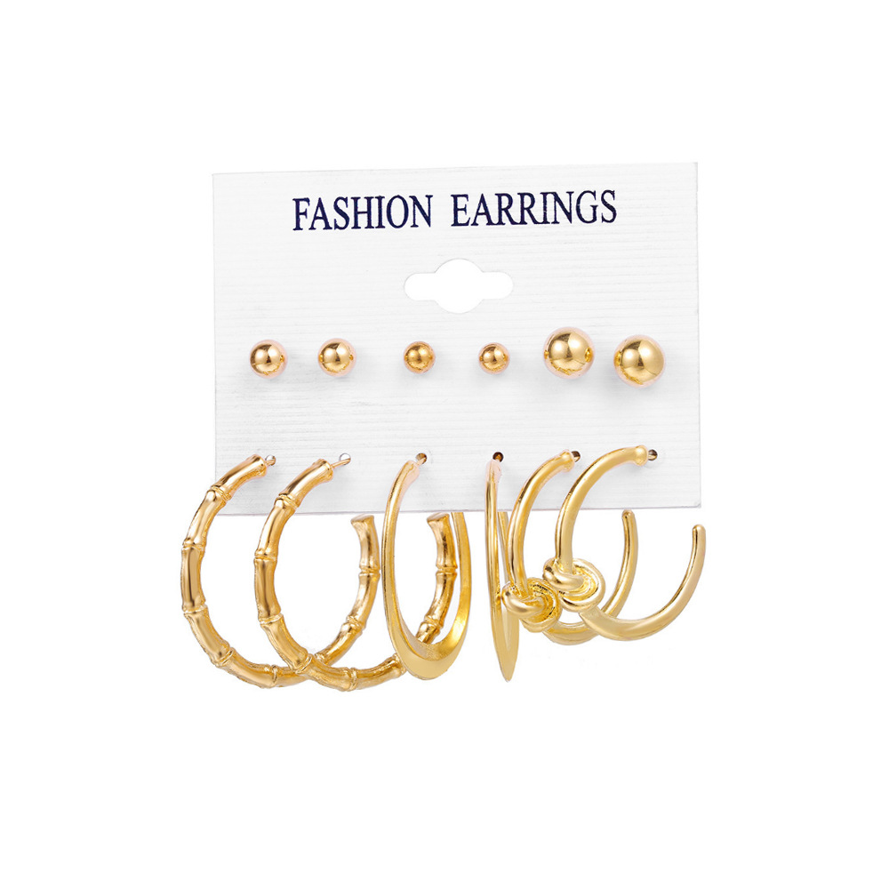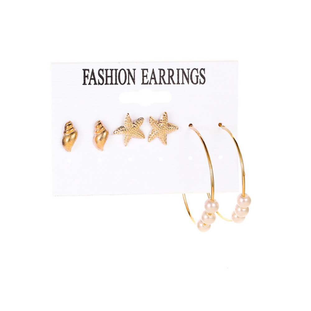 2021秋冬欧美跨境新款个性合金珍珠9对耳环 气质流苏叠戴风耳饰