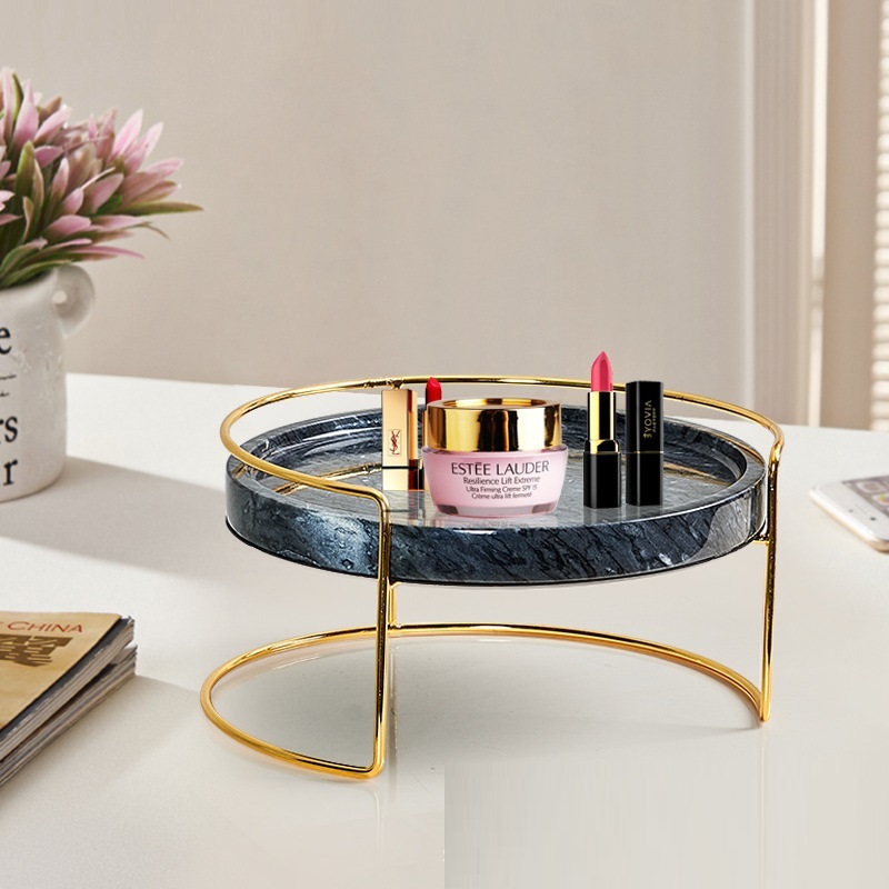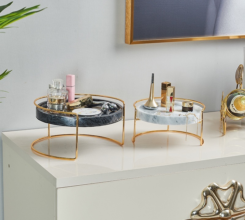 北欧轻奢大理石化妆品托盘收纳盘样板间展示柜展厅化妆台收纳礼品