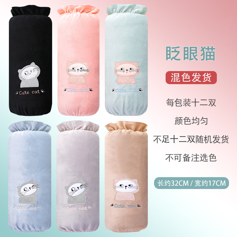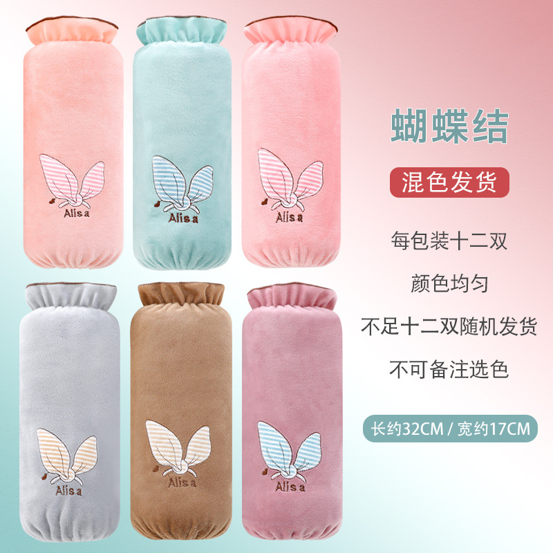 冬季女士长款爱心蝴蝶结绣花绒布袖套布艺工坊可选色爆款套袖护袖