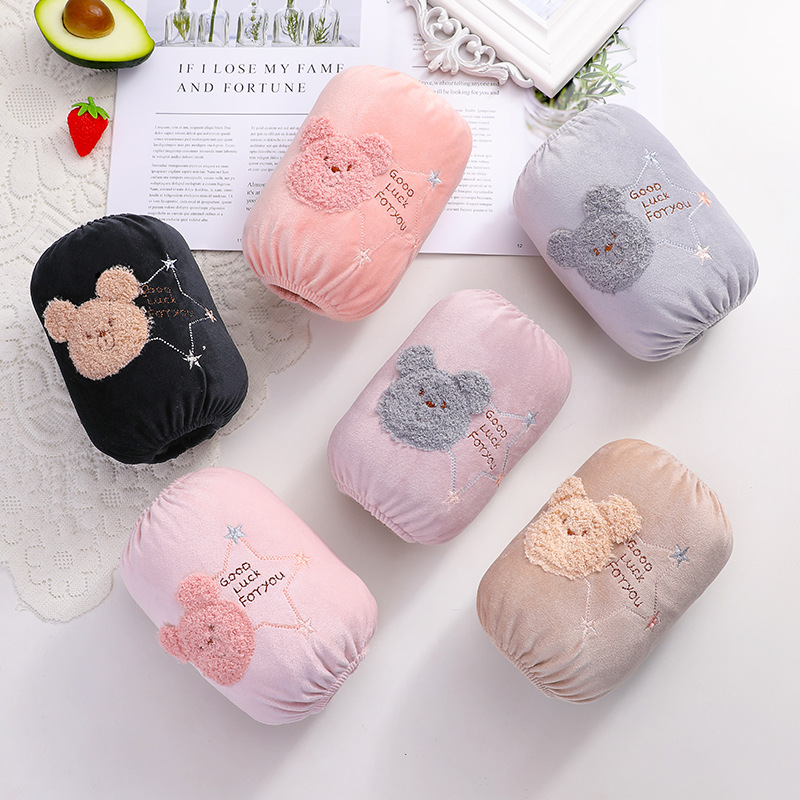 儿童大童卡通绣花绒布袖套 布艺工坊秋冬季学生防污毛绒套袖护袖